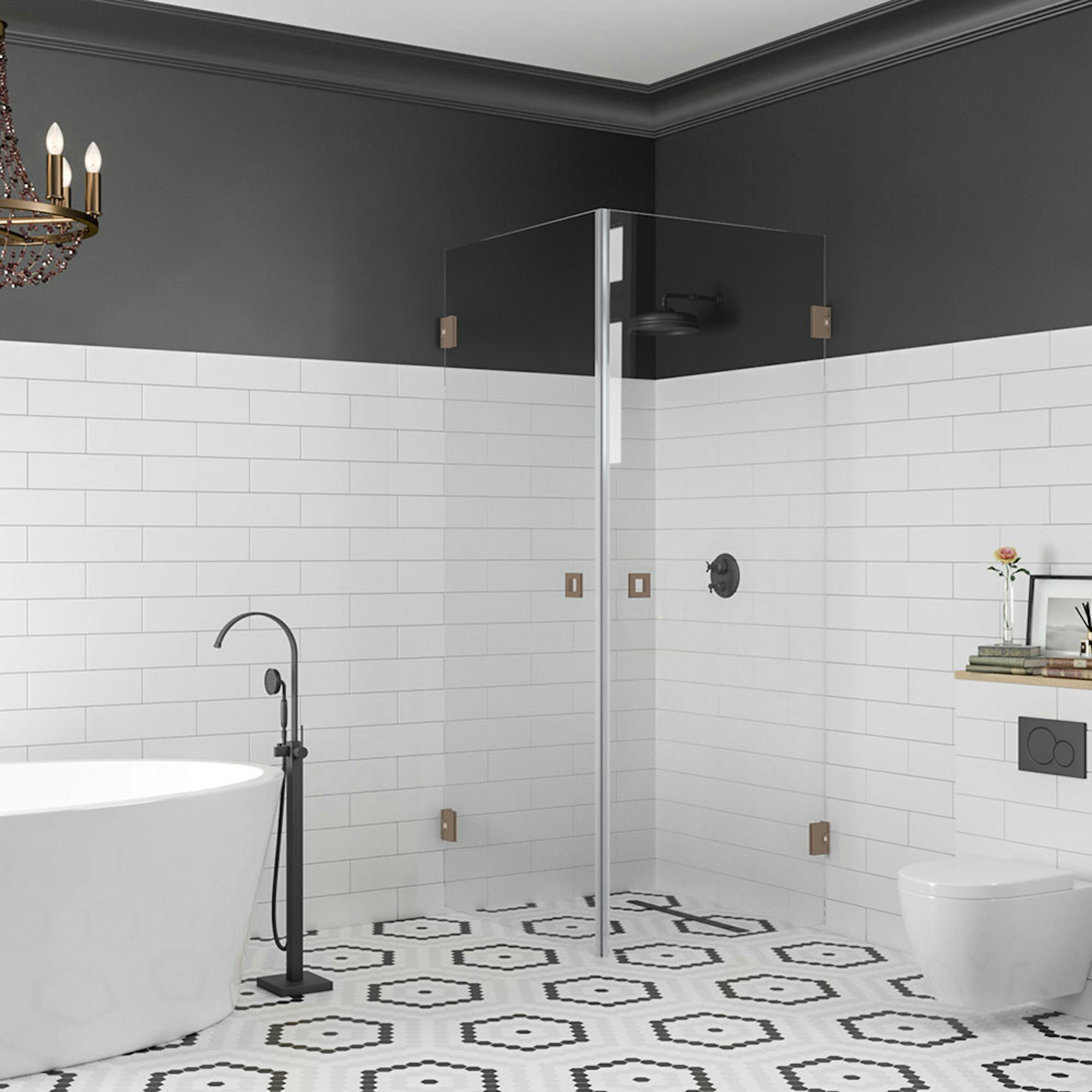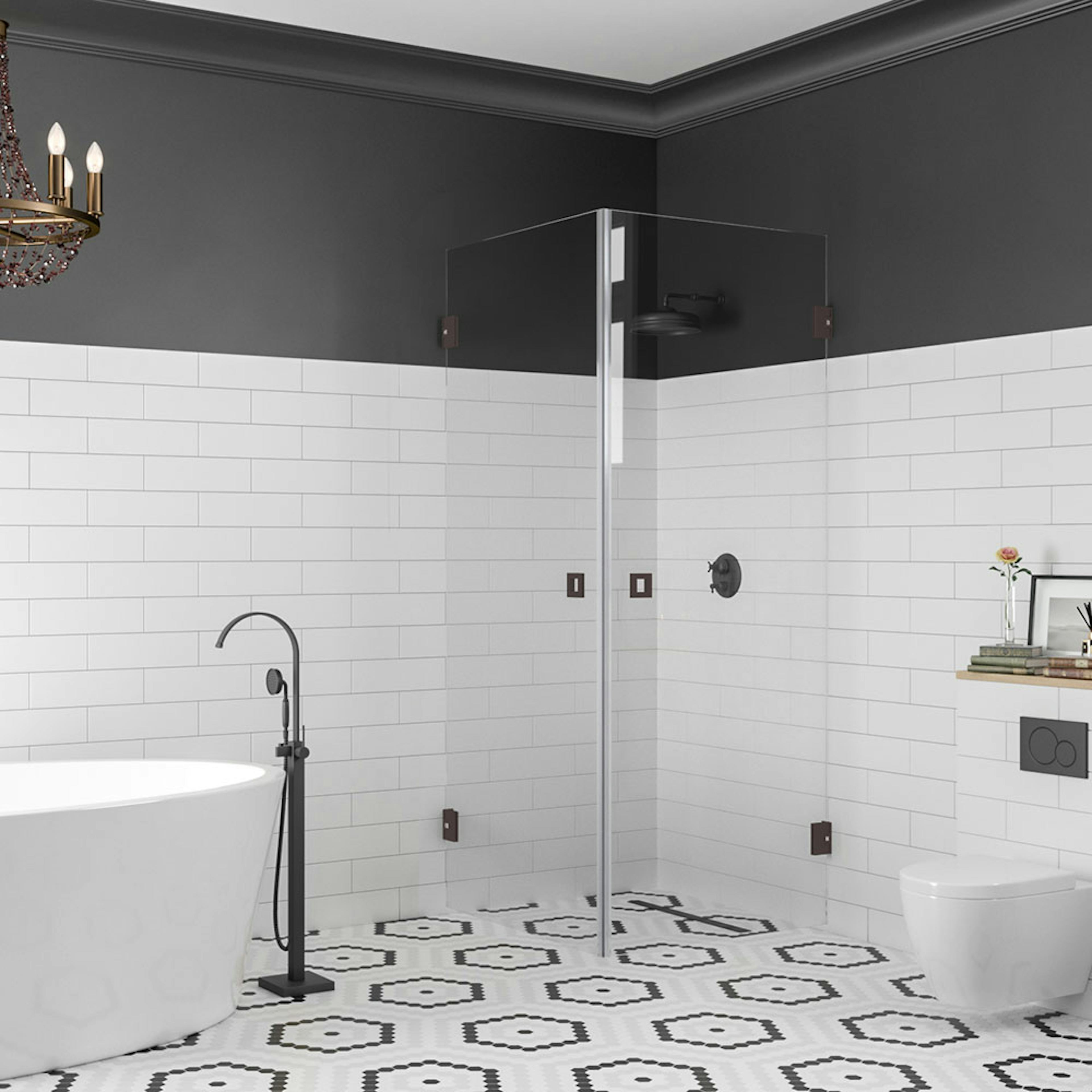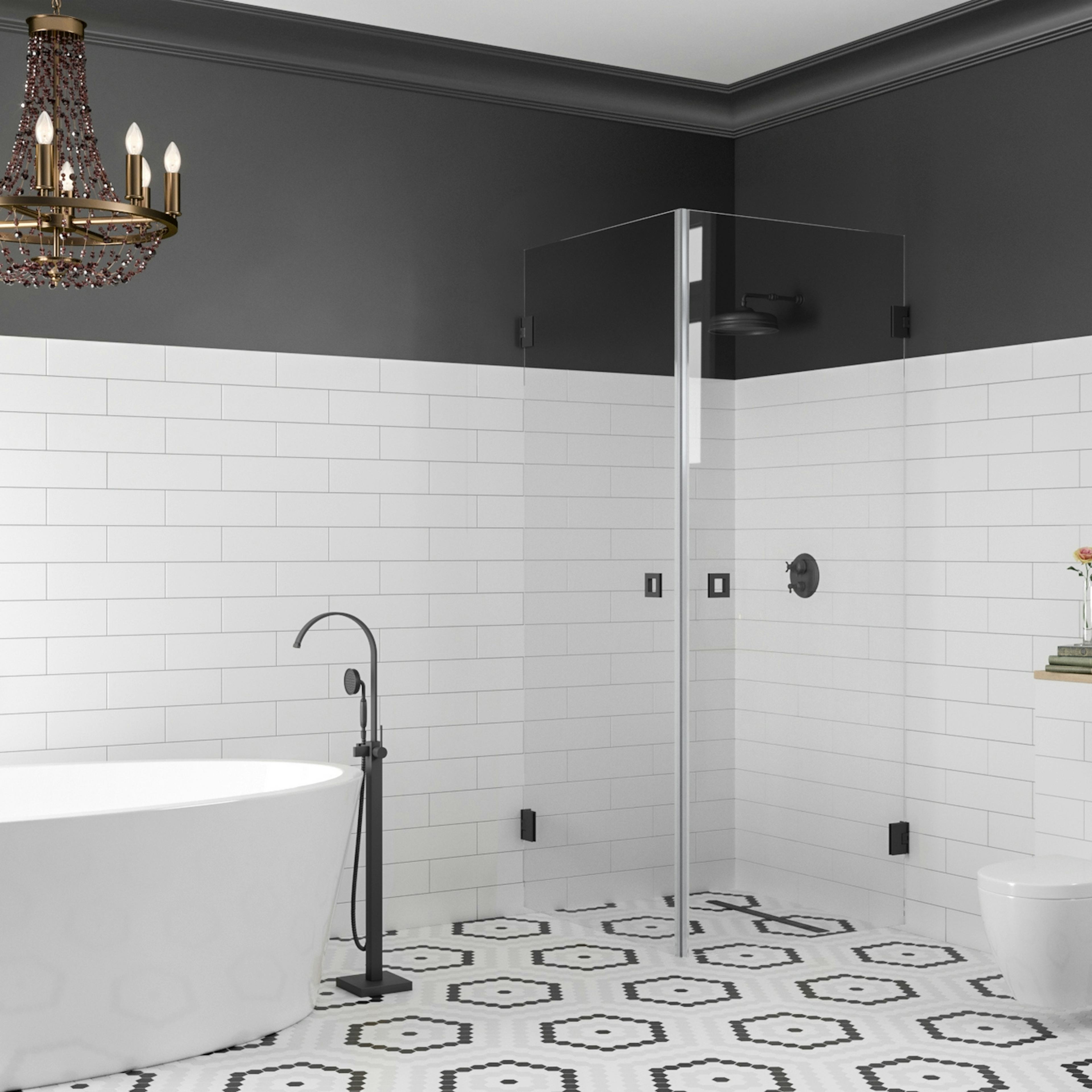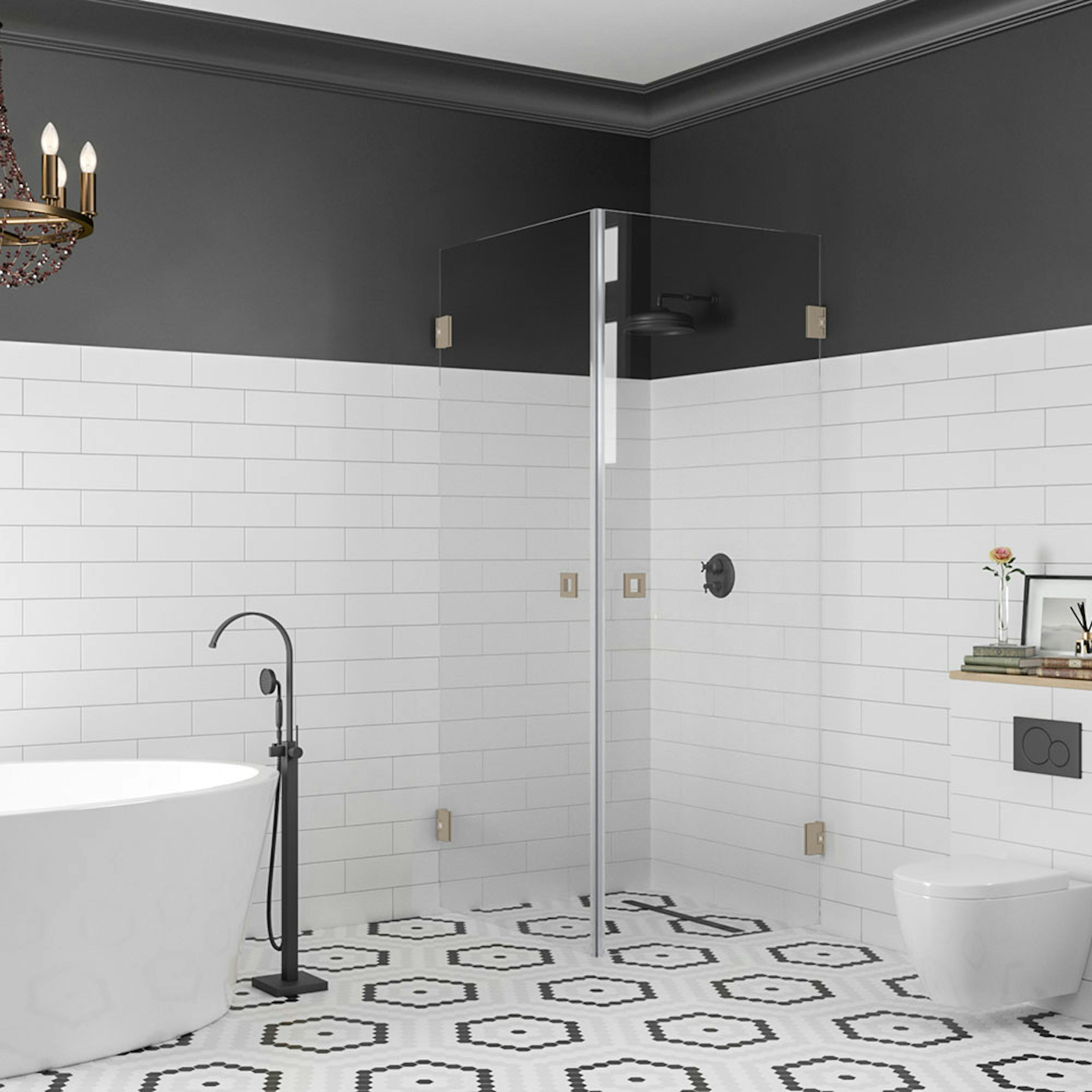 Duschhörnets delar kan man montera även tvärtom jämfört med hur det visas på grundbilden.
