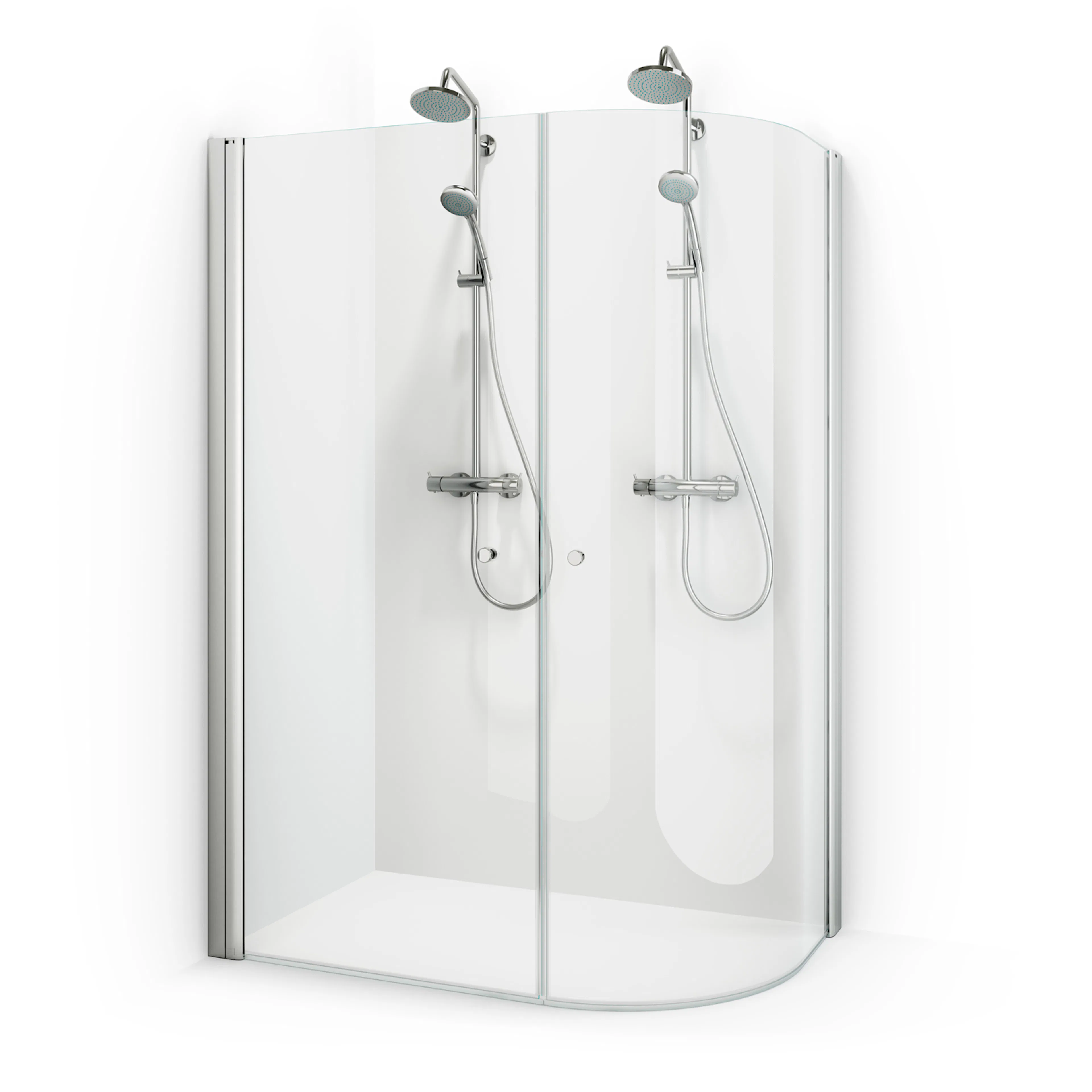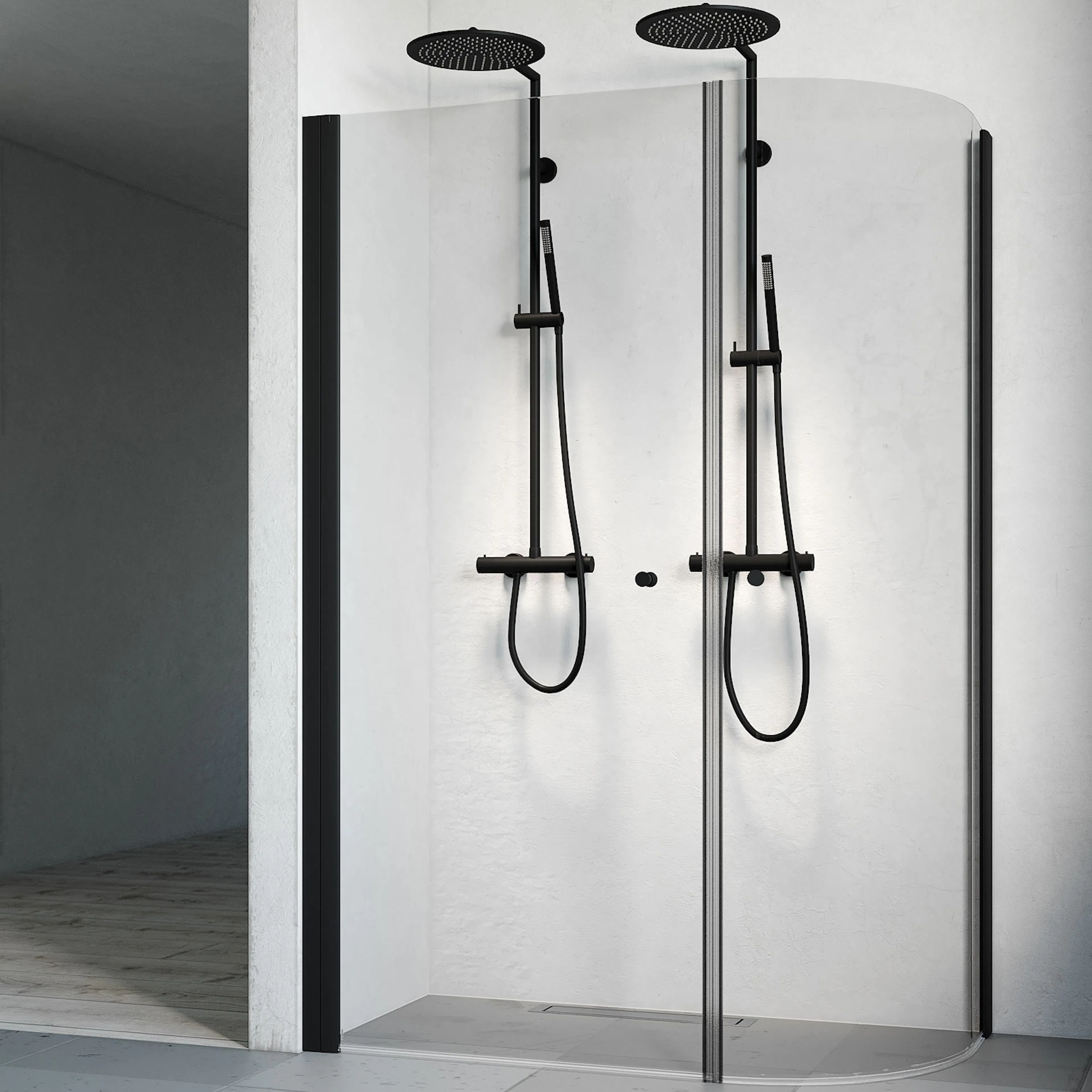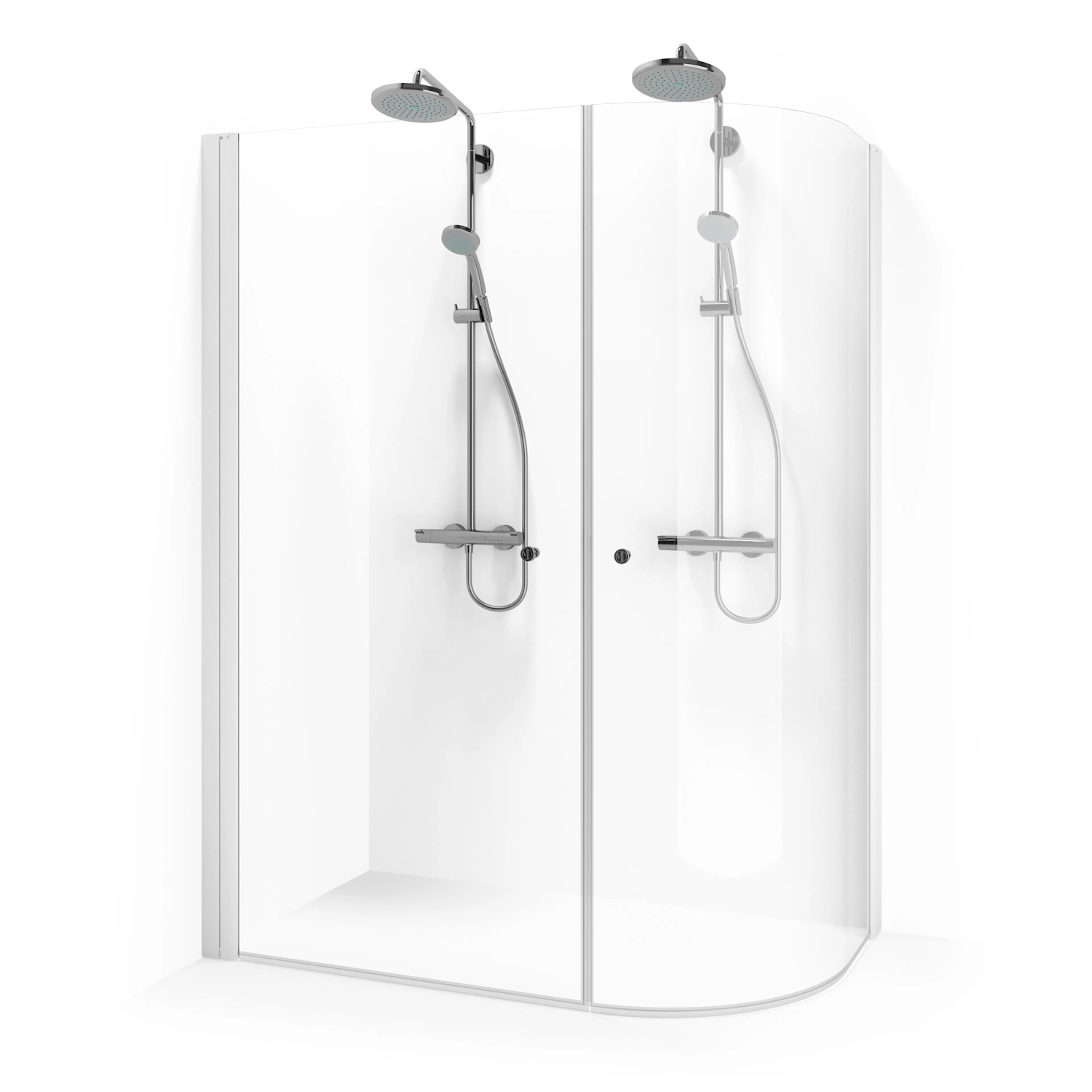 Stort duschhörn från Macro i snygg J-formad design som ger det lilla extra. Här kan du få plats med dubbla duschset så att ni kan duscha samtidigt men passar även många äldre då många vill ha en rymlig dusch med plats för en pall.