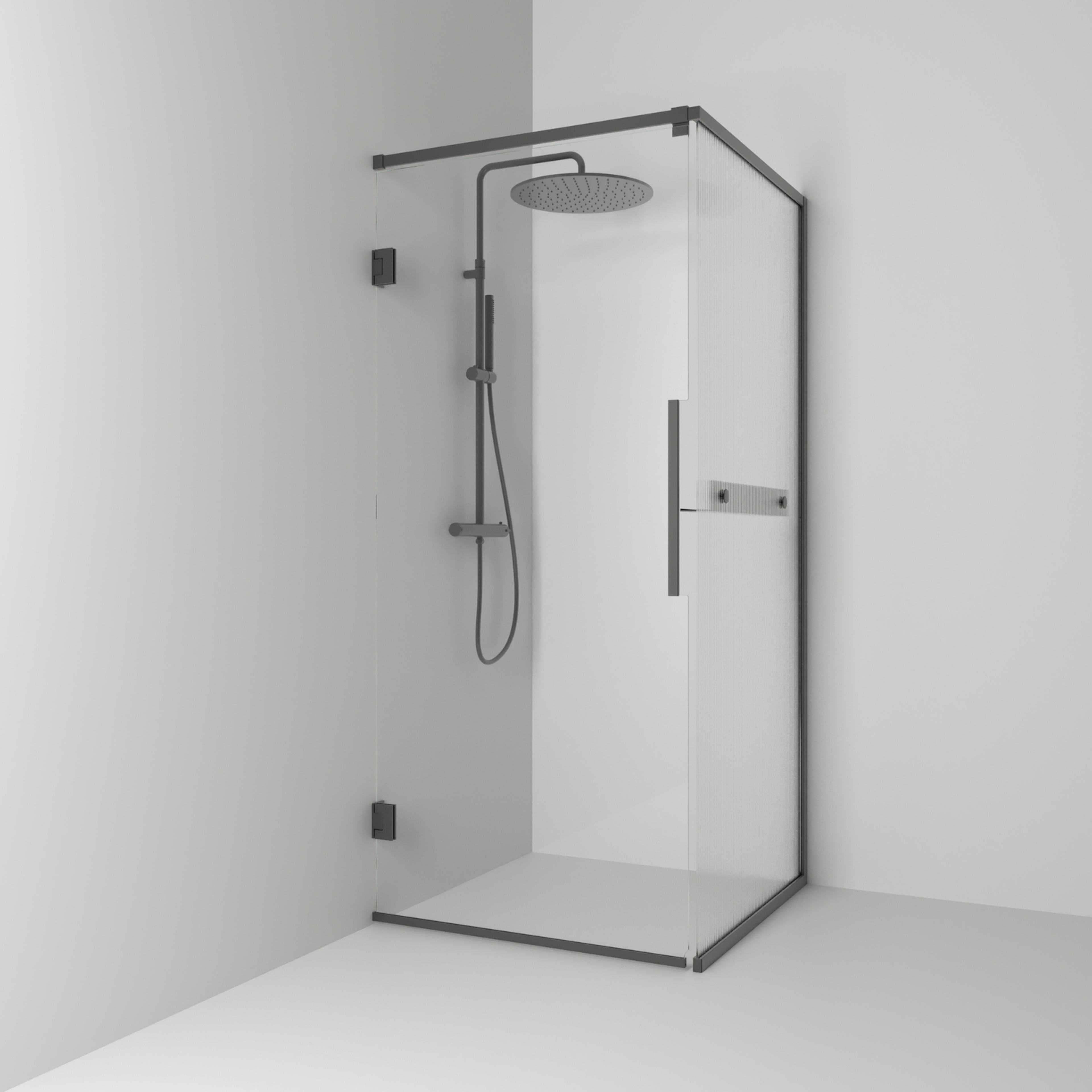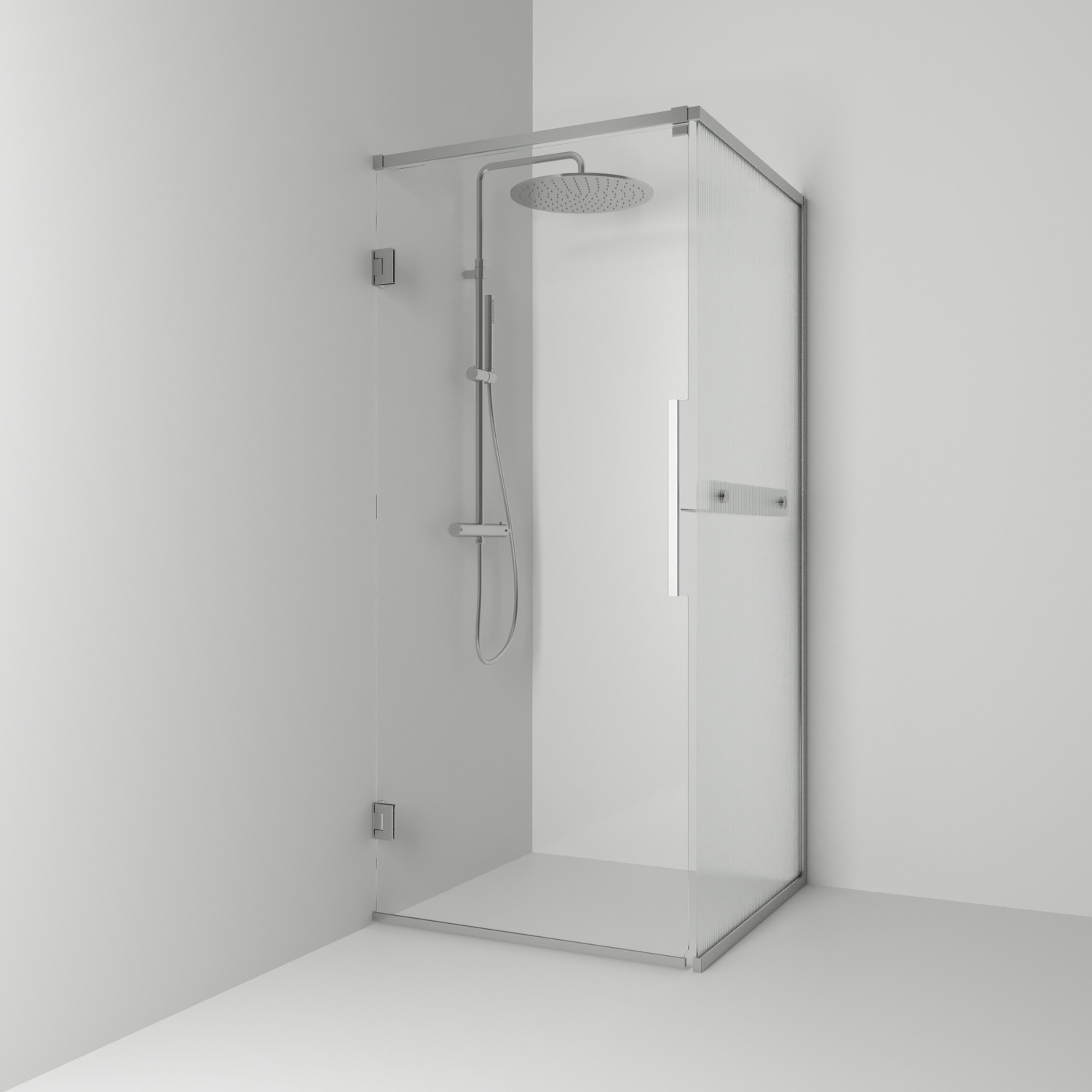 Langfoss Duschhörn består av en fast vägg och en duschdörr. Duschhörnet finns att välja med höjd 200 cm (201 cm ovankant med tillvalet gardinskena) eller höjd 230 cm (231 cm ovankant med tillvalet gardinskena). Härdat säkerhetsglas 6 mm. Väggprofil medger ej rördragning. Köp till rördragningsprofil, gardinskena och gardin som finns i flera färger.