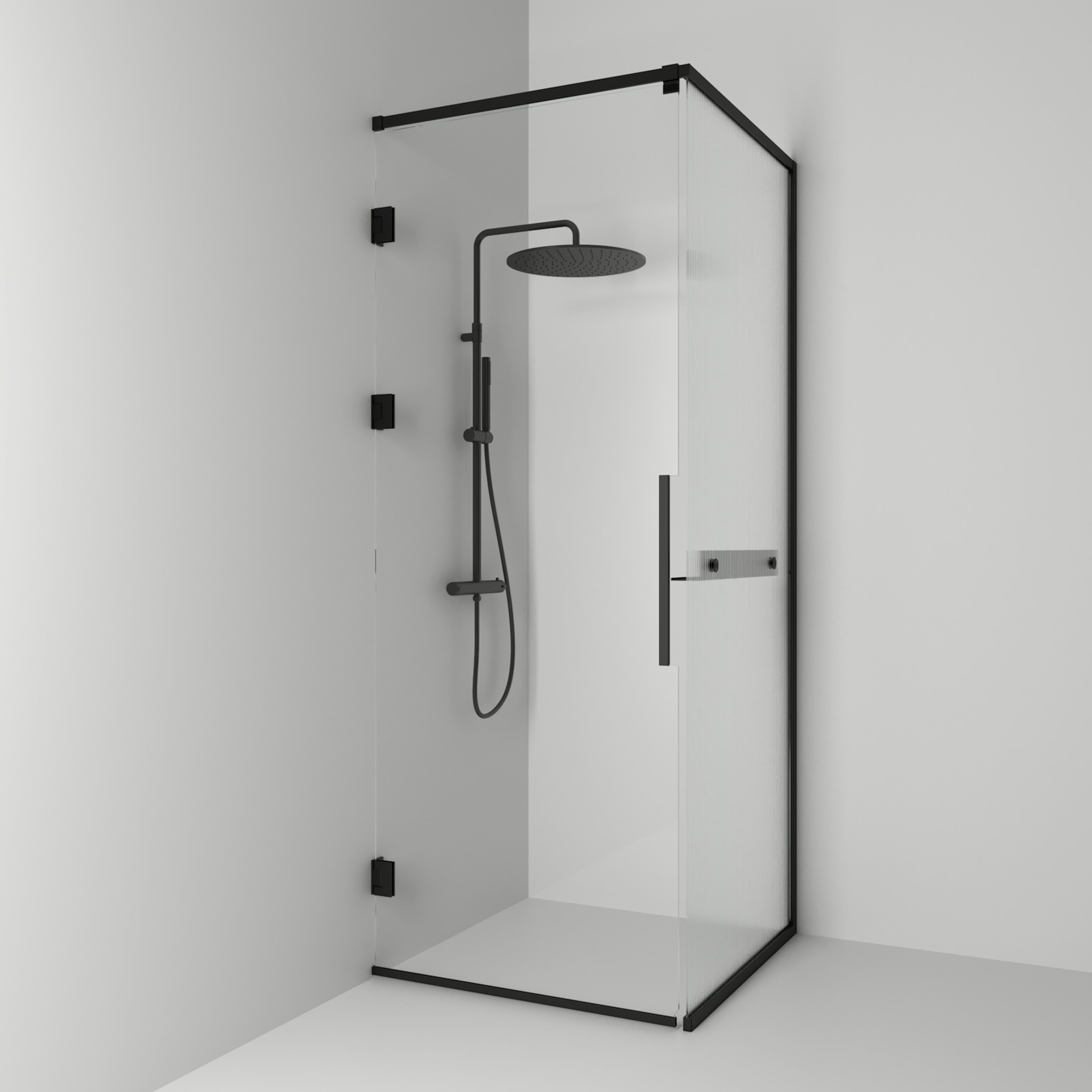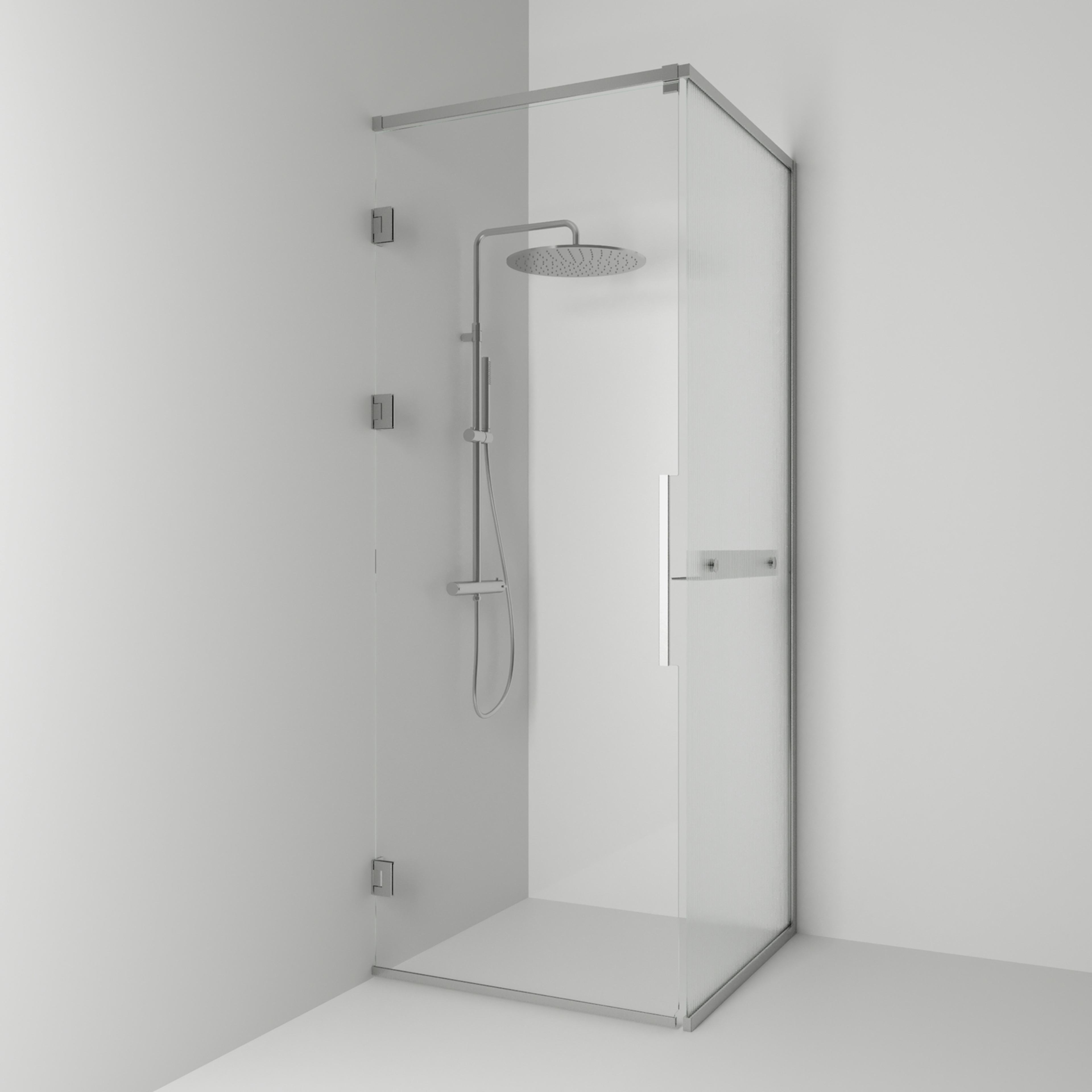 Langfoss Duschhörn består av en fast vägg och en duschdörr. Duschhörnet finns att välja med höjd 200 cm (201 cm ovankant med tillvalet gardinskena) eller höjd 230 cm (231 cm ovankant med tillvalet gardinskena). Härdat säkerhetsglas 6 mm. Väggprofil medger ej rördragning. Köp till rördragningsprofil, gardinskena och gardin som finns i flera färger.