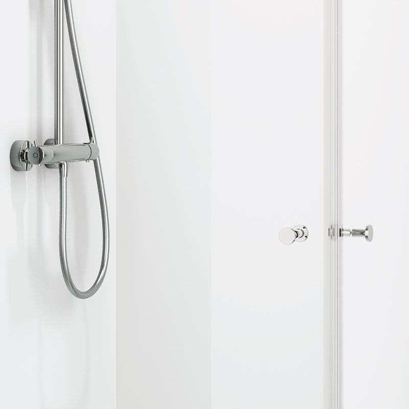 Duschkabin Macro Design Flow är en flexibel duschkabin, full med smarta detaljer. Till och med de anspråkslösa smådelarna håller högsta klass. Även delar som knappt syns är omsorgsfullt förädlade och precist måttanpassade. Kabinen levereras med två förvaringshyllor och är förberedd för utanpåliggande blandare (cc 150).