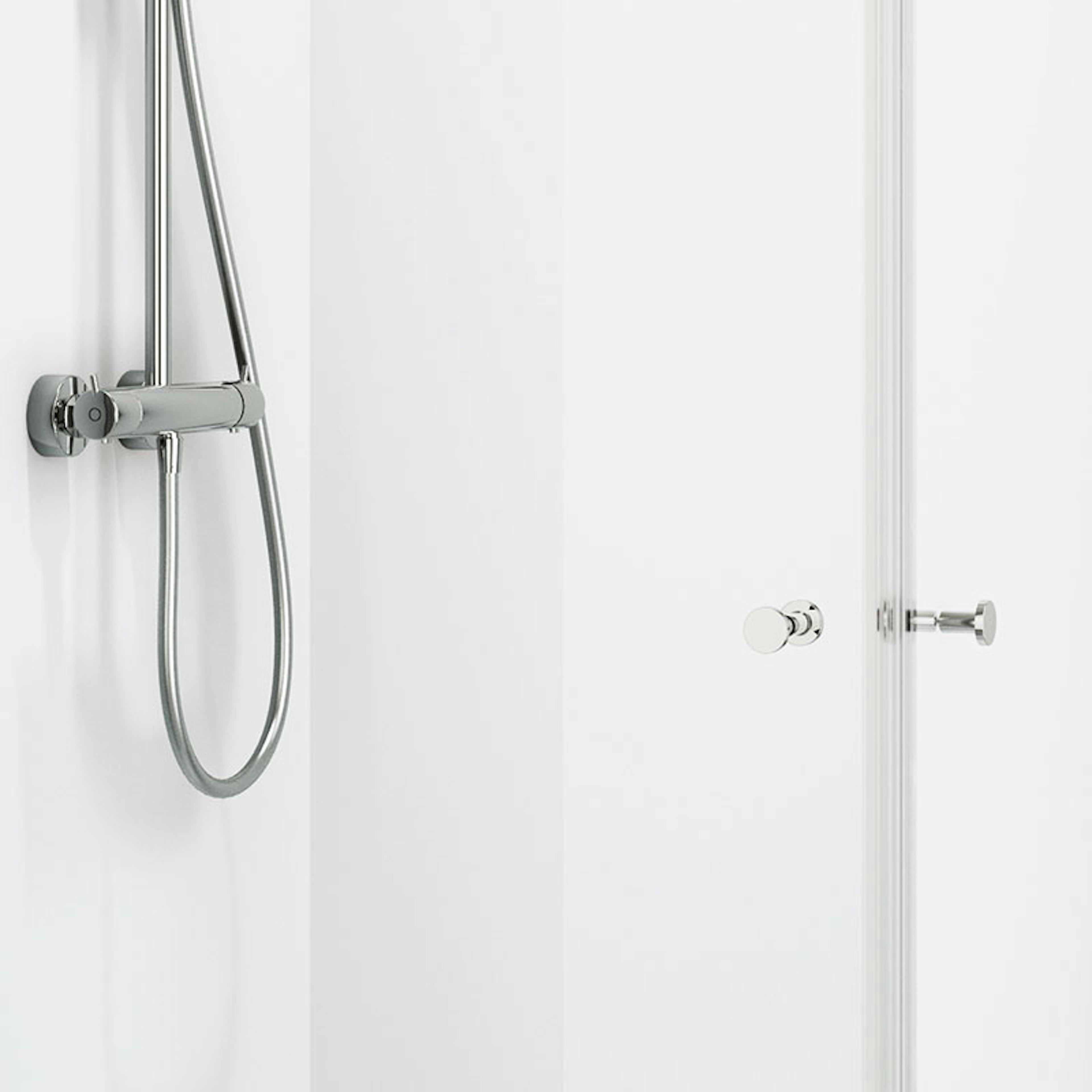 Duschkabin Macro DesignFlow Semi utan Blandare910x910x1990 mm, Vit Profil, Klarglas/Vit bakvägg
