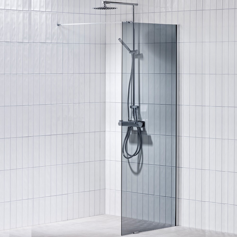 Duschvägg Alterna Lusso är en stilren, fast duschvägg som är 2000 mm hög. Den levereras med en duschvägg, golvfäste, släplist samt förkromade profiler. Väggprofilen är justerbar ± 7,5 mm och väggstag för fast skärmvägg medföljer.