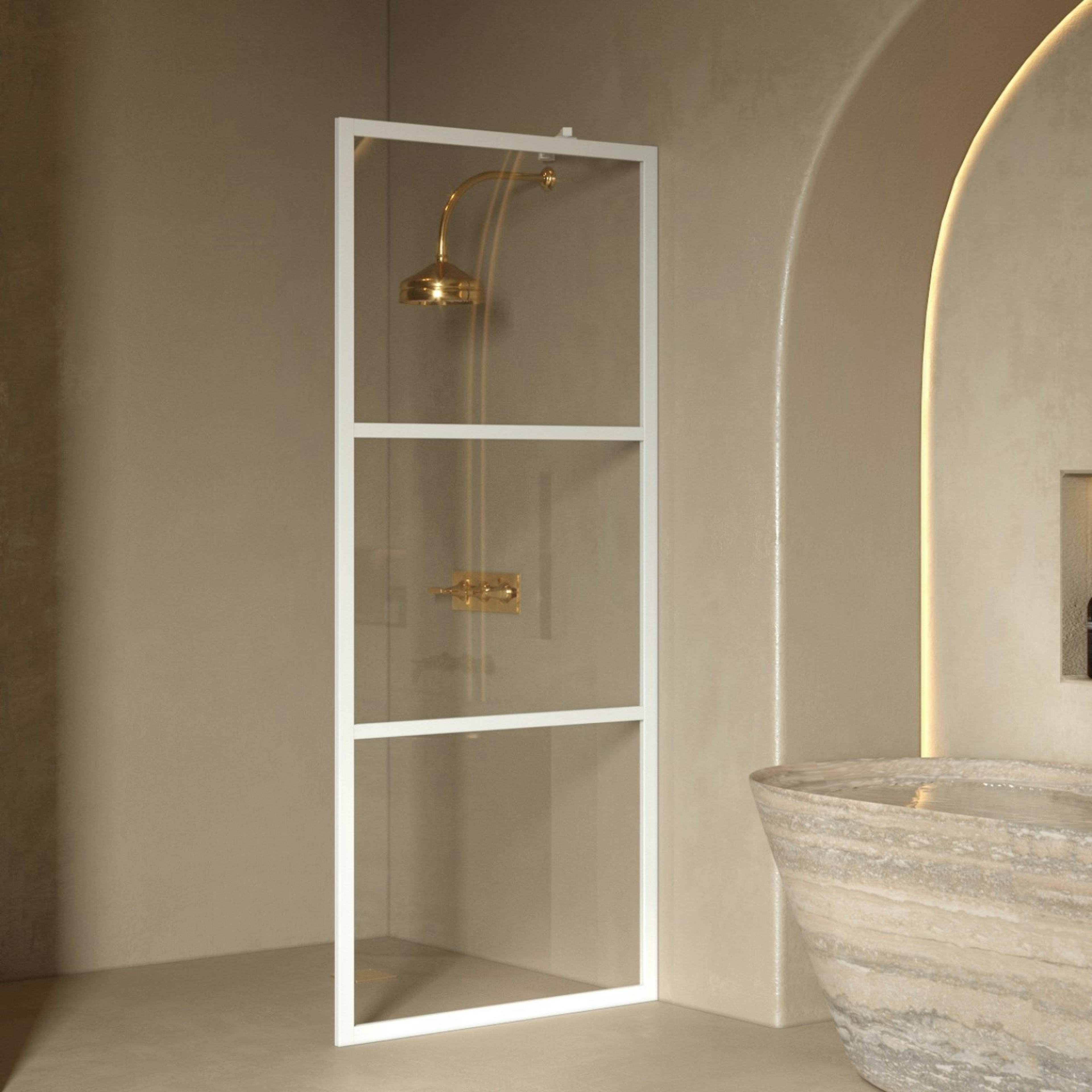 Duschvägg Hietakari Bläk 734 Tokyo Fast797x1950 mm, Klarglas, Vita Profiler