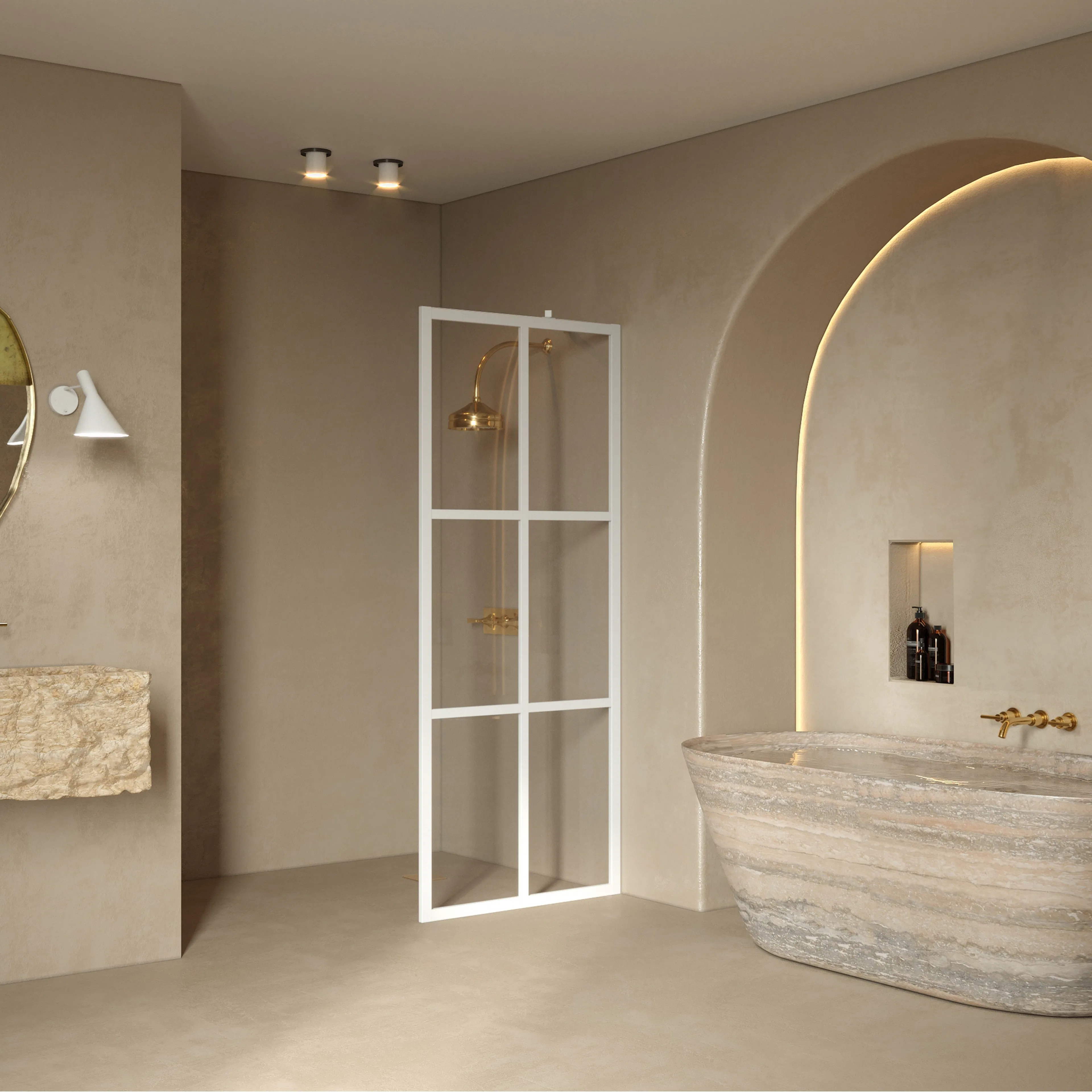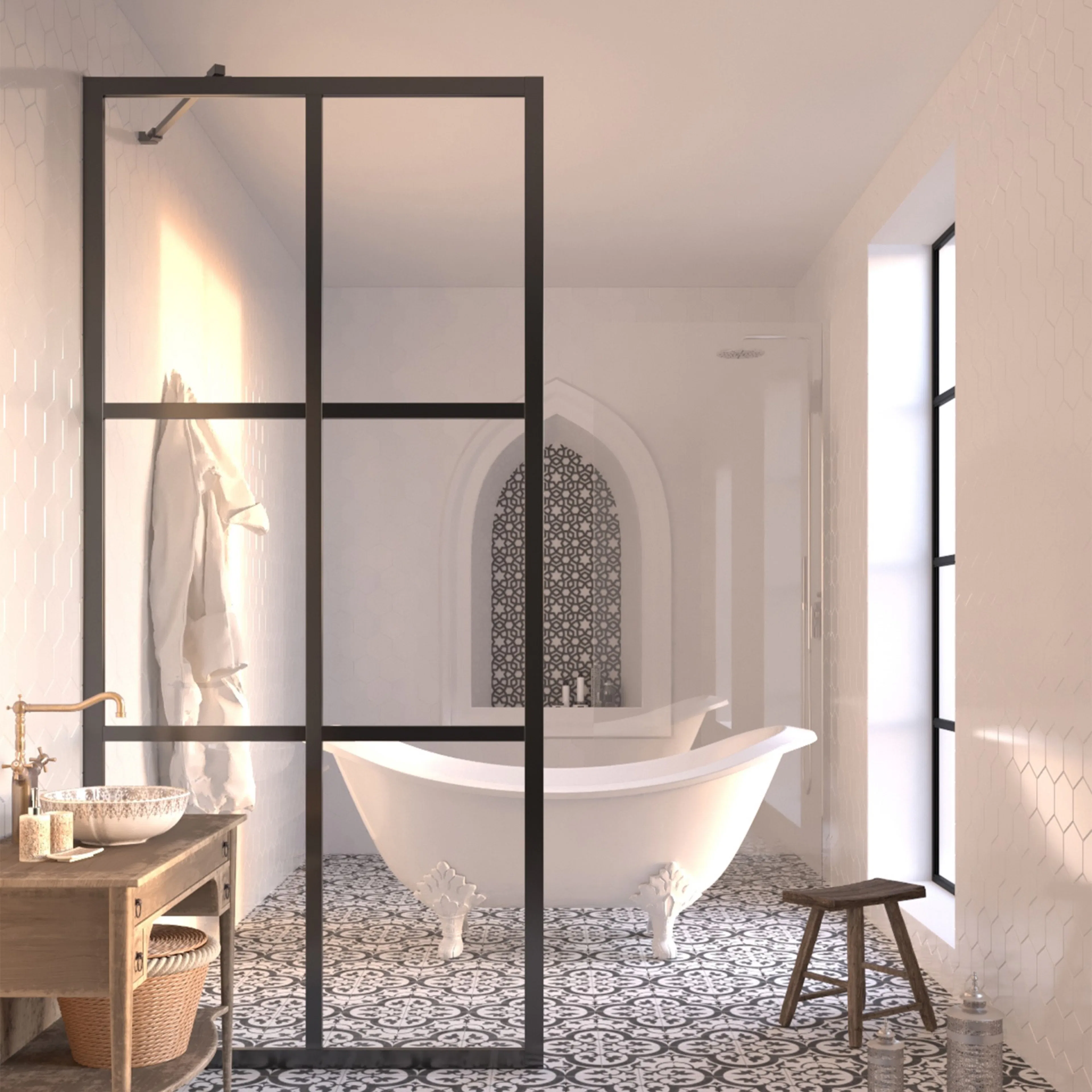 Duschvägg Hietakari Bläk 737 Paris är en fast duschvägg i industriell stil. Den fasta väggen skyddar effektivt mot vattenstänk. Produkten förses med en golvlist som har 7 mm höjdtolerans, golvlisten monteras i golvet under duschpanelen. Ifall högre lutning finns bör produkten beställas med justeringsfot, då sockeltätning tillkommer. Även sockeltätningen skyddar effektivt mot vattenstänk. Duschväggen hålls stabil tack vare det sneda sidostaget. Istället för det sneda sidostaget, kan man välja duschväggen med ett långt sidostag, som installeras i 90 graders vinkel, finns att välja som tillval.