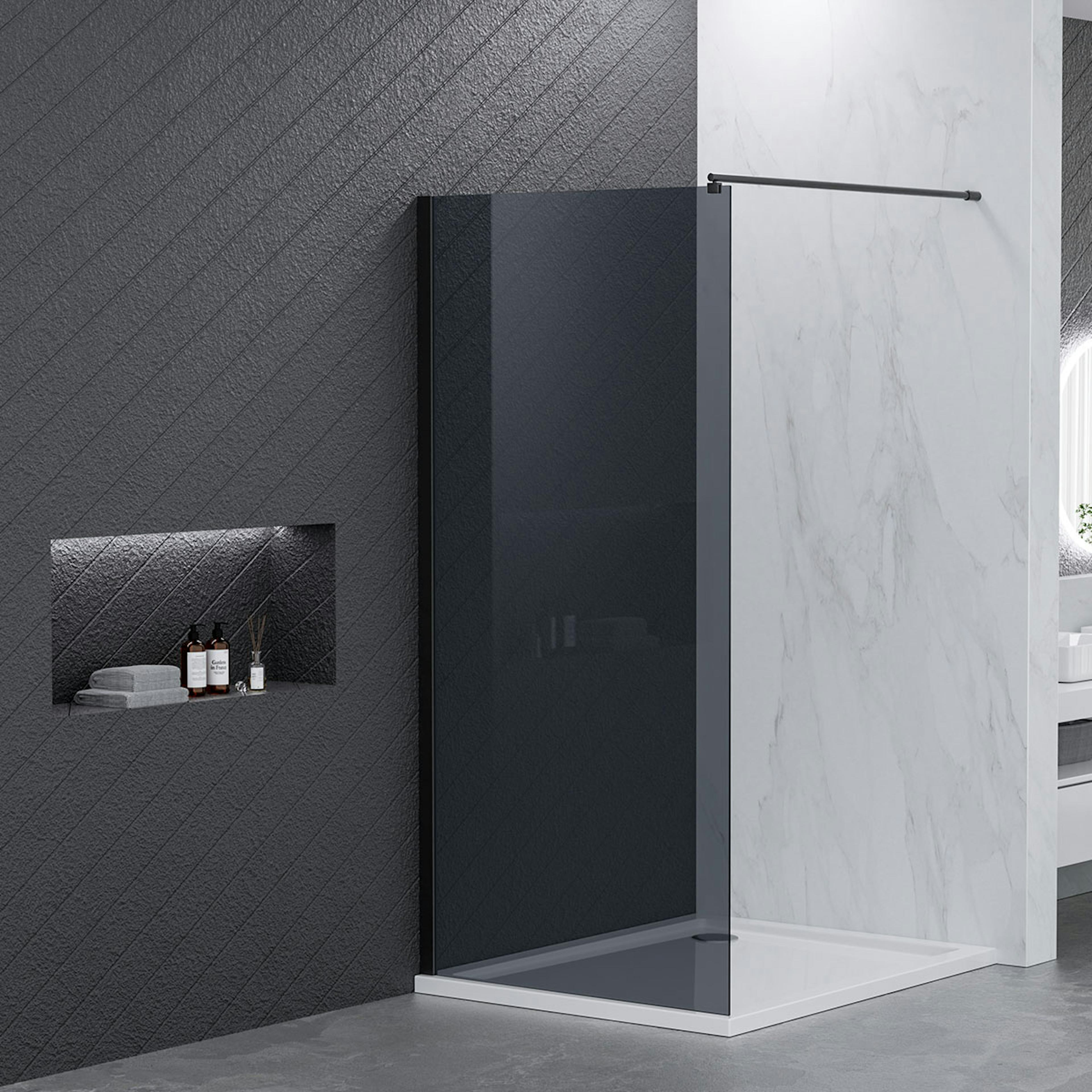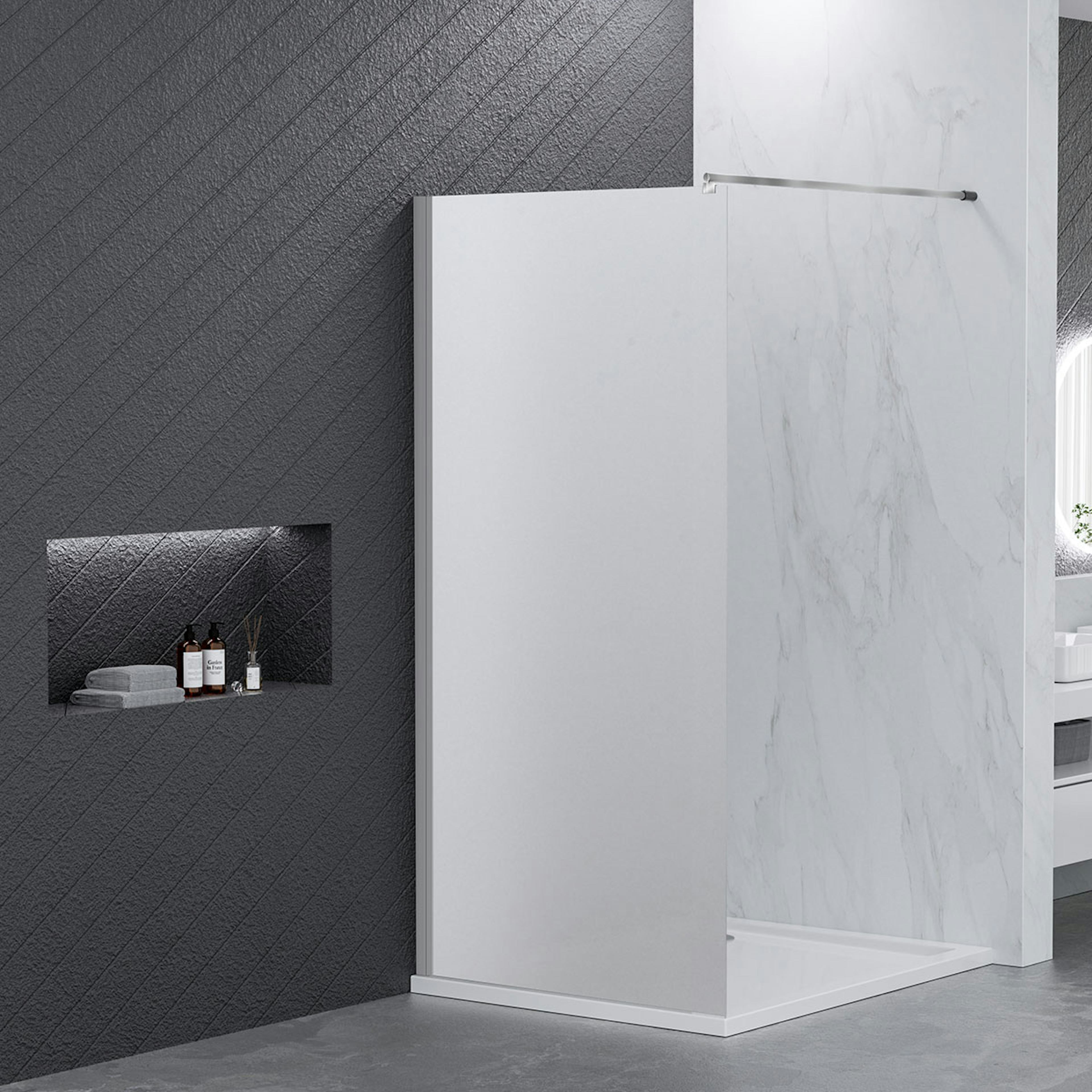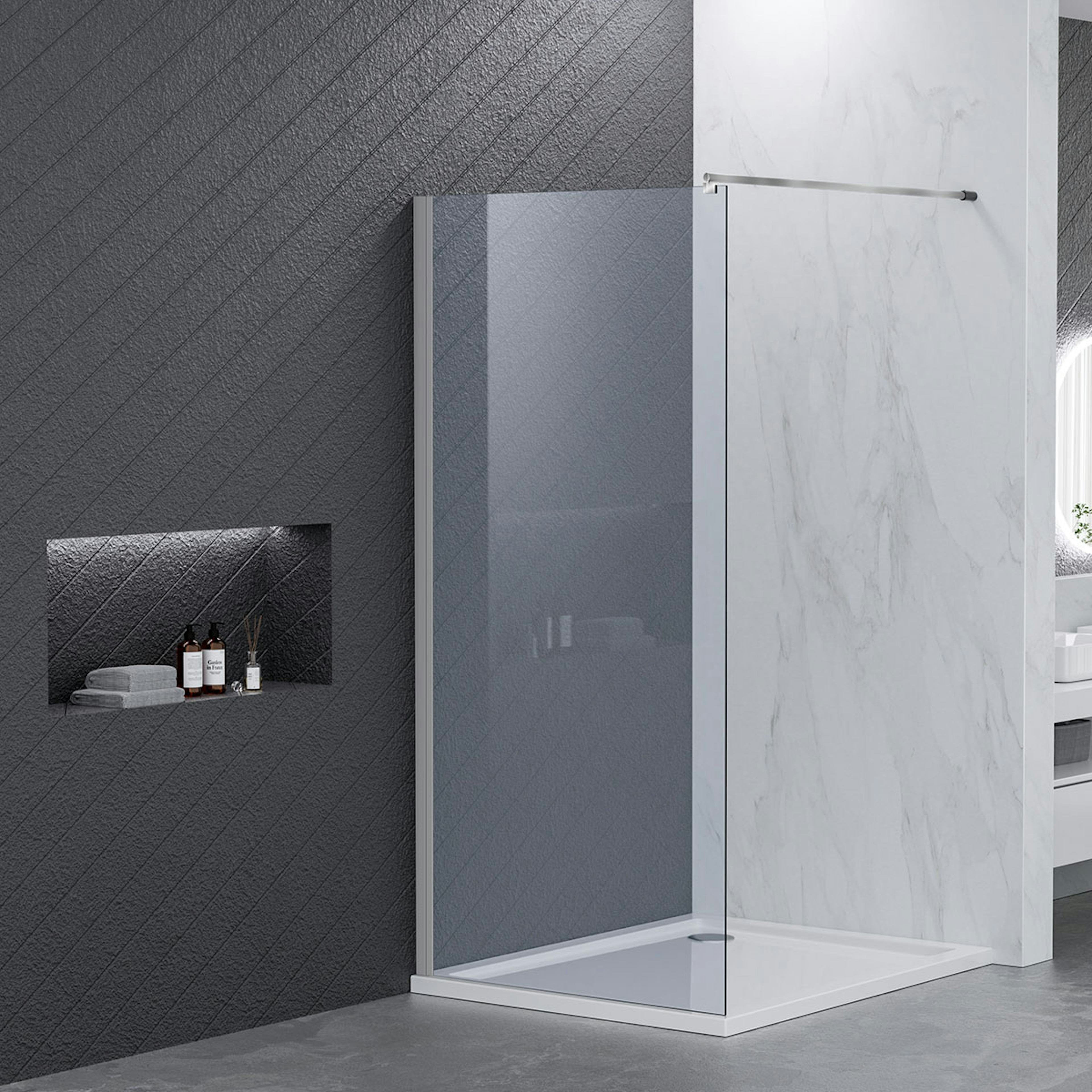 Denna duschvägg finns i flera utföranden för att du ska kunna välja den som passar din stil perfekt.