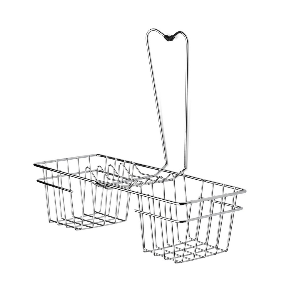 Blandarkorg av rostfritt stål med rymliga korgar för smart förvaring av exempelvis schampo- och tvålflaskor. Böj hängarna till önskad vinkel med händerna. Den hängs under blandaren. 3 års rostskyddsgaranti.