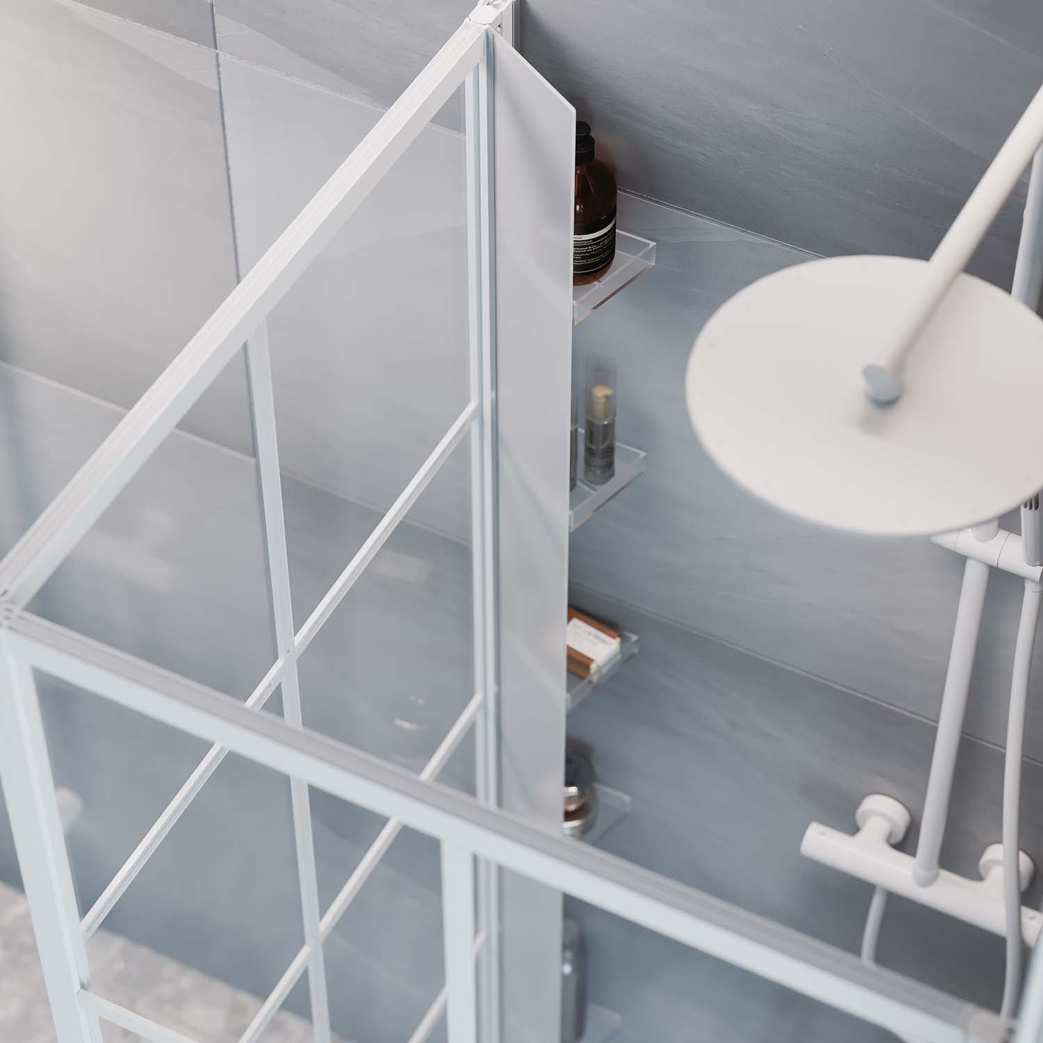 OBS! Duschen Empire måste vara monterad med en bred väggprofil (Svart RSK 7403456, Vit RSK 7403474) för att Tidy duschhylla ska rymmas och inte störa dörrfunktionen.