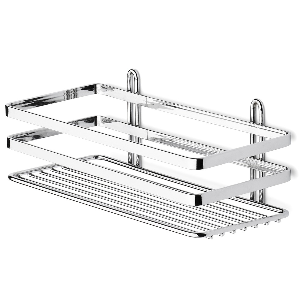 Duschkorg av rostfritt stål som monteras med skruv, ingår ej. Med en hylla för smart förvaring. 3 års rostskyddsgaranti.
