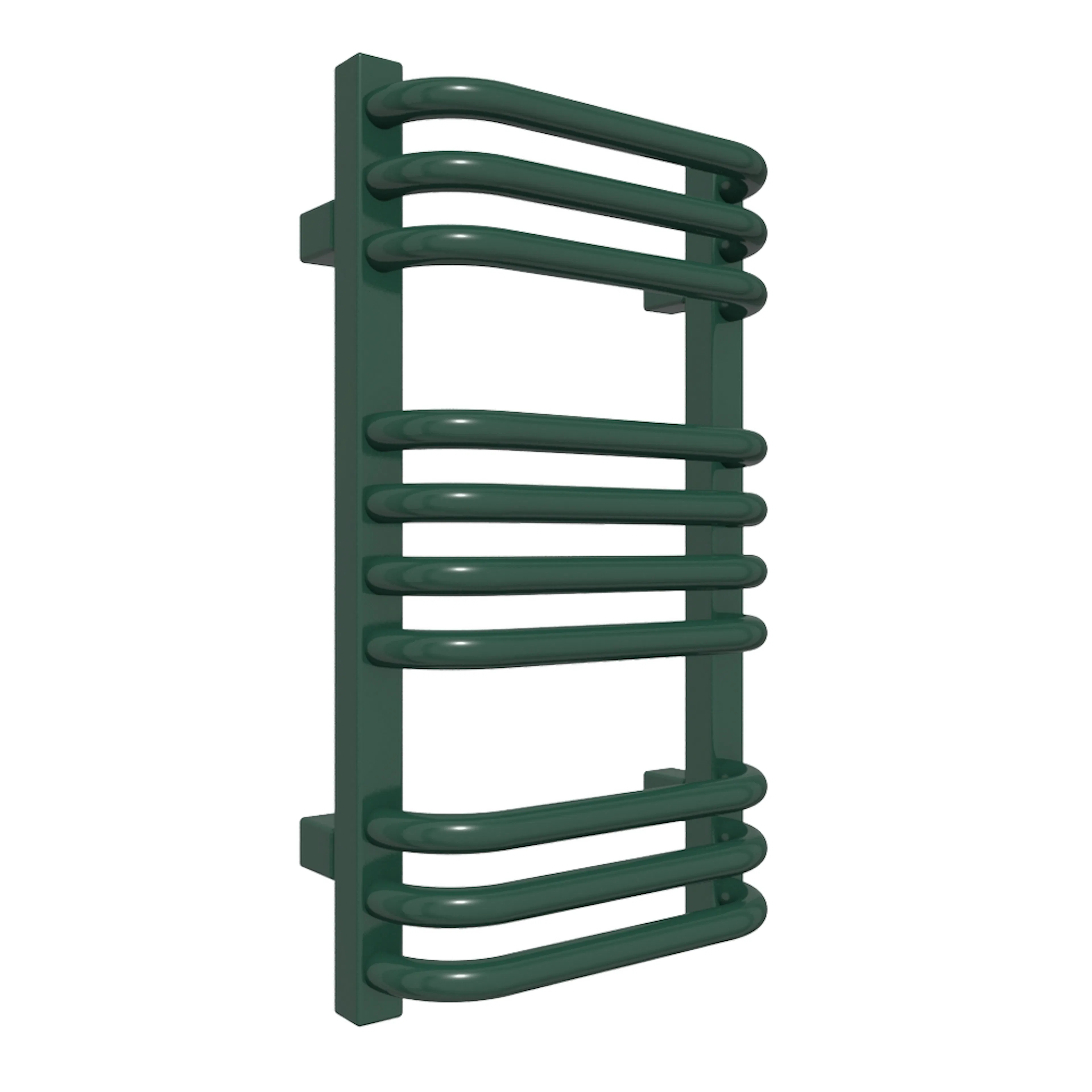 Med sina lätt utåtbuktande rör skapar Alex ett elegant intryck samtidigt som det blir lätt att komma åt, hänga upp och ta ner handdukarna. Handdukarna omfamnas av Alex och ges optimal möjlighet att torka effektivt.