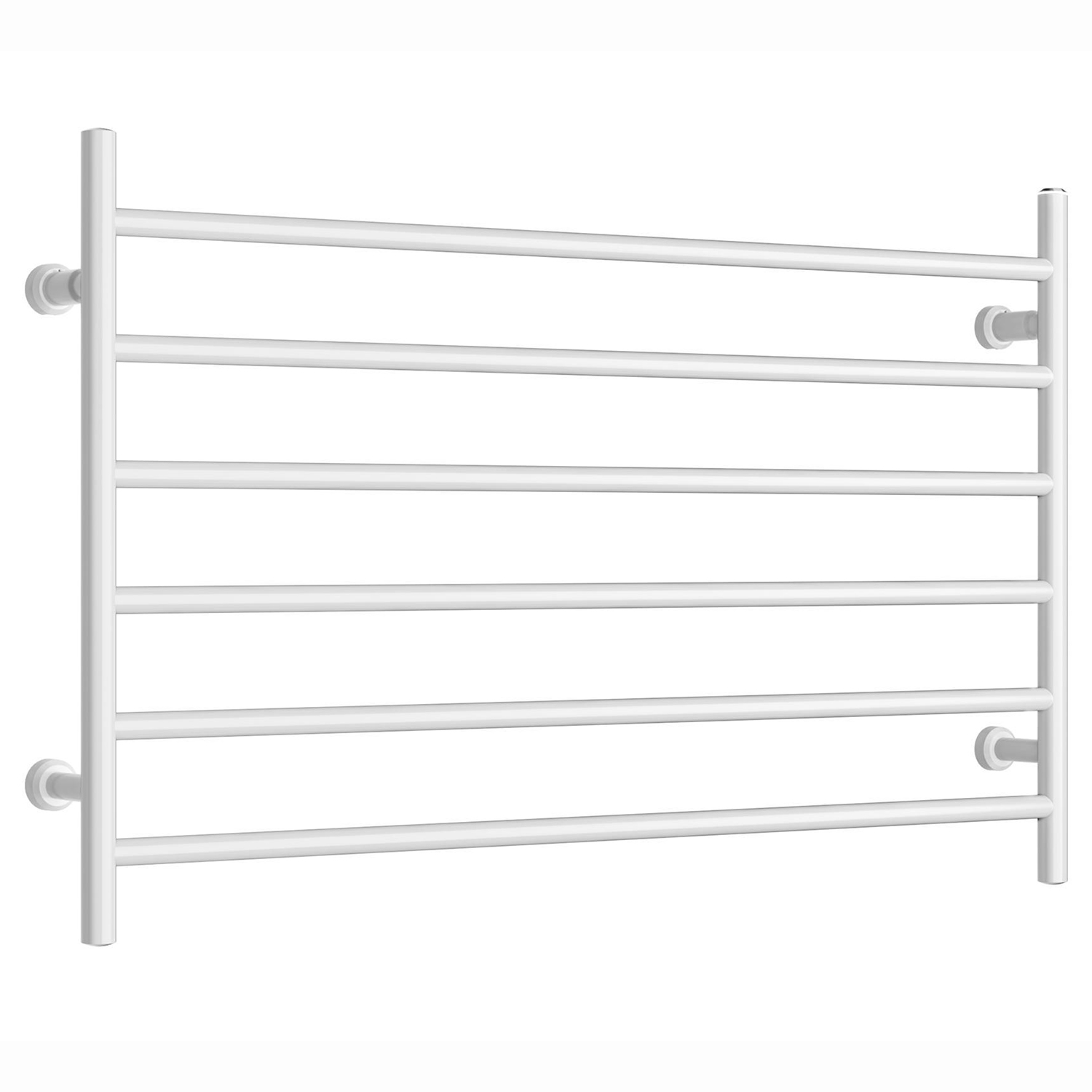 Handukstorkarna av Largoserien är bredare men mindre höga för att lämpa sig om man vill placera torken ovanför ett skåp eller möbel. 100646 mäter 640x1045mm och har med sina sex rör gott om plats för handdukar och annat som vill torkas också hos en större familj.
