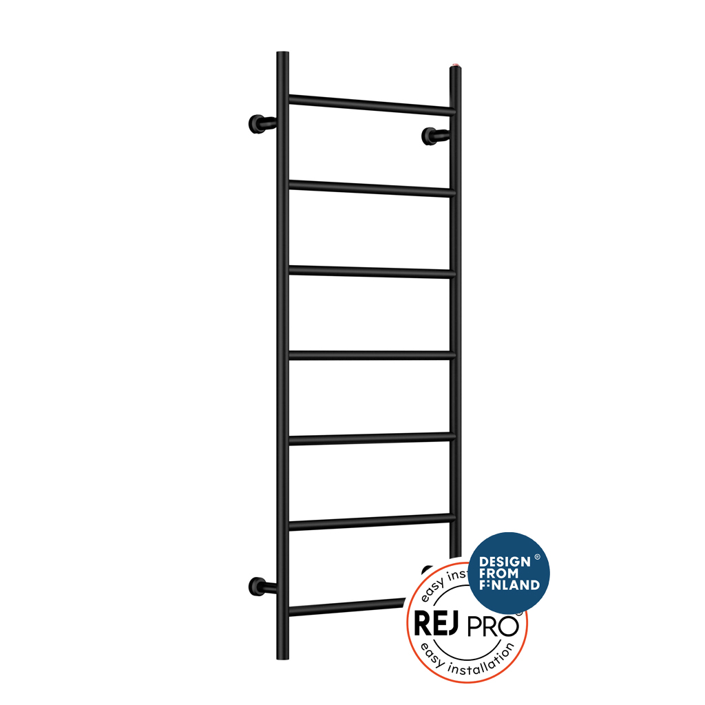 REJ Design tillverkar handdukstorkar i Finland av koppar – ett exklusivt material med överlägsen värmeledningsförmåga. Resultatet är snabb uppvärmning, jämn värmespridning och en tork som håller i många år. Den höga kvaliteten kombineras med ett smart installationssystem som minskar monteringstiden med upp till 50%. Med ett högre inköpspris på handdukstorken så blir totalkostnaden ofta lägre tack vare tidsbesparingen. Med REJ Design får du en stilren, energieffektiv och långsiktig lösning – tillverkad för nordiska krav.