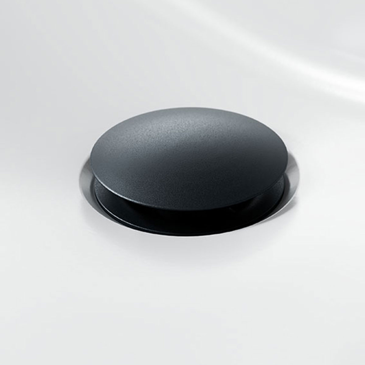 Bottenventil i rostfritt stål som matchar färgvalet på tvättställsblandaren. Bottenventilen är av universalmodell och du väljer själv vid installation om du vill ha den öppen eller med pop-up. Till tvättställ utan överfyllnadshål rekommenderar vi att hålla bottenventilen öppen på grund av översvämningsrisken.