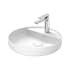 Tvättstället har ett centralt placerat hål för armaturen som ger en balanserad och minimalistisk estetik, medan den runda formen ger en mjuk och inbjudande känsla.
