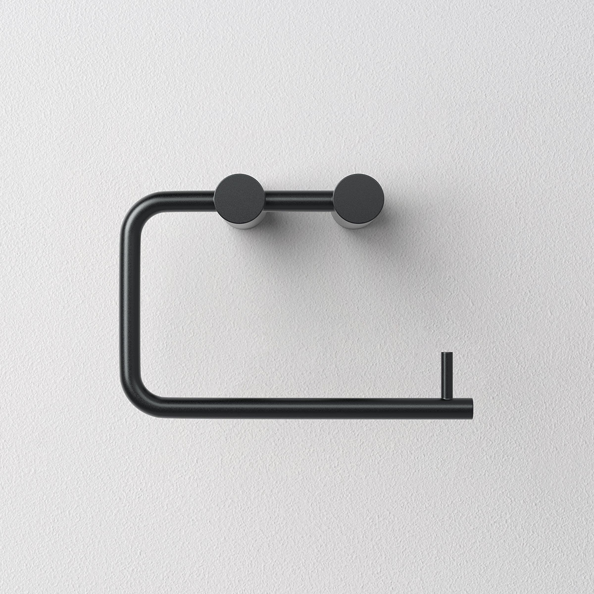 Toalettpappershållare i rostfritt stål som matchar övriga produkter i samma finish.