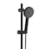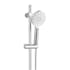 Duschset med duschstång av rostfritt stål och duschslang med AntiTwist. Duschhandtag med tre olika strålbilder, traditionell, massage och dimstråle. Ø 120 mm. Duschstång med justerbara väggfästen 350-575 mm.