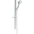 Duschset Hansgrohe Raindance Select S 120 3jet är fullutrustad med funktioner och har en väldigt modern och stilren design. Duschstången på 90 cm är av platt aluminiumprofil med säkerhetsglas. Duschhållaren som sitter på höger sida av duschstången, sitter i ett "spår" som kan justeras i höjdled. Utrustad med en hylla i säkerhetsglas som är väldigt praktisk som avställningsyta, nu slipper du ha schampoflaskorna på golvet. Den Ø125 mm stora handduschen som dessutom är utrustad med tre olika stråltyper erbjuder en härlig duschupplevelse varje gång du kliver in i duschen. Tack vare Select-knappen så skiftar du mellan stråltyperna med ett enkelt knapptryck. Utöver Select-knappen så är duschmunstycket utrustat med antikalksystemet Quick Clean samt energi- och vattenbesparande funktionerna AirPower och EcoSmart. Finns att köpa i olika färger.