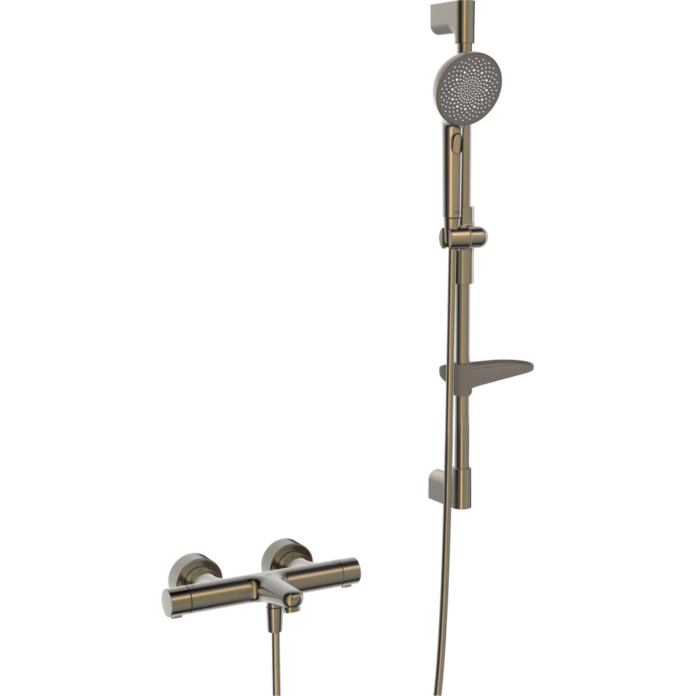 Duschset Oras Aurelia med Bad- och duschblandare är ett duschpaket innehållande termostatblandare för kar/dusch, anslutning 150 cc med G 3/4" inv.g., lekande mutter med plantätning. samt duschset. Blandaren har användarvänliga vred med temperaturbegränsningsknapp 38°, samt flödeskontroll. Utrustad med backventiler och smutsfilter. Duschset med Ecoflöde, duschslang 1750 mm, duschstång, hållare för handdusch, flexibla/fasta väggfästen och handdusch med 3 strållägen för en komfortabel duschupplevelse. Handduschen är enkel att rengöra tack vare sina antikalk-munstycken. De perfekt utformade vreden fulländar designen utan att förlora dess funktionalitet. Det blir enkelt att justera flödet och temperaturen för den perfekta duschupplevelsen.