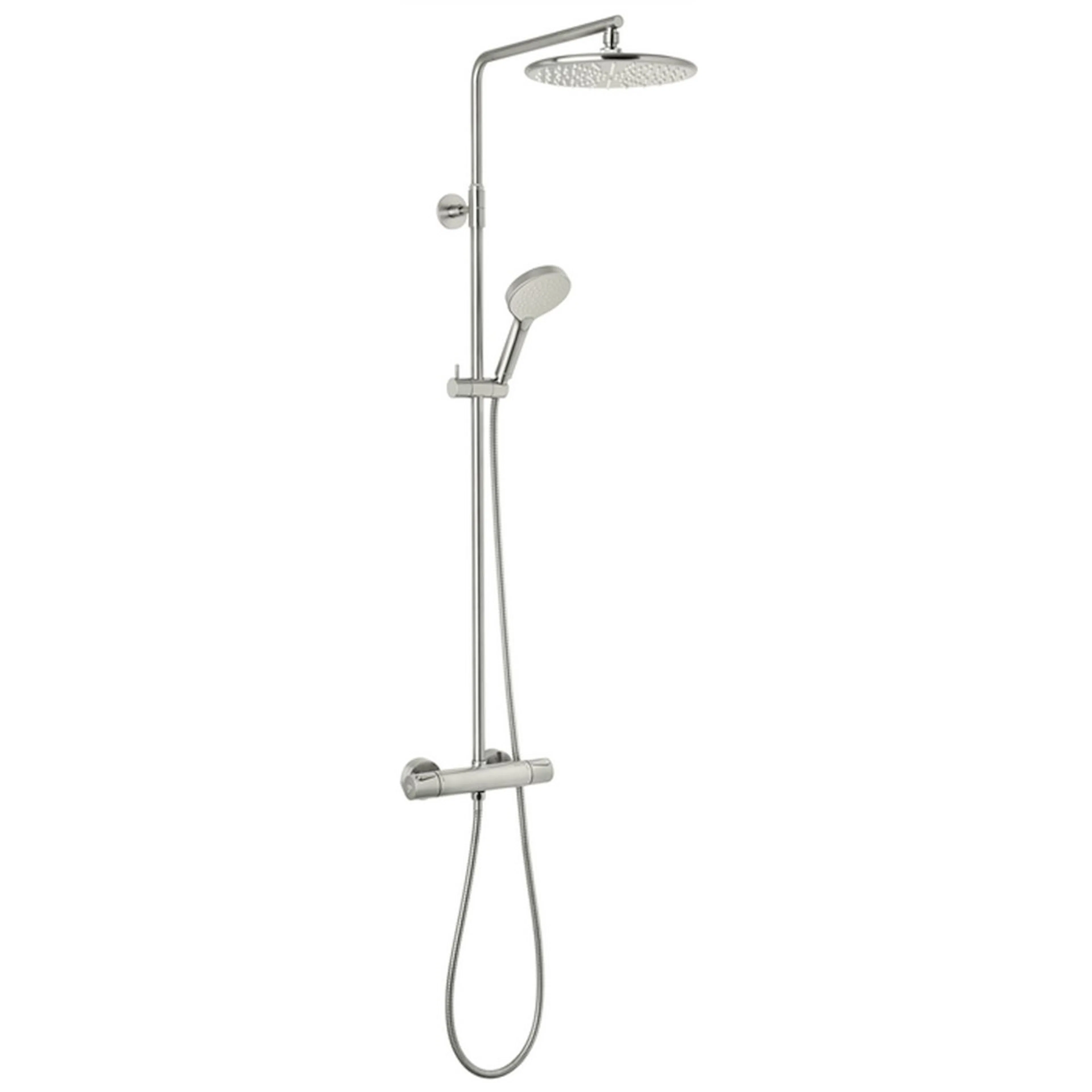 Takduschset Silhouet från Damixa är ett komplett duschset med blandare, takdusch, duschstång och en handdusch med tre stråltyper och duschslang. Det stilrena takduschsetet har flera praktiska funktioner som skållningsskydd, Eco-Click och Rub-Clean.