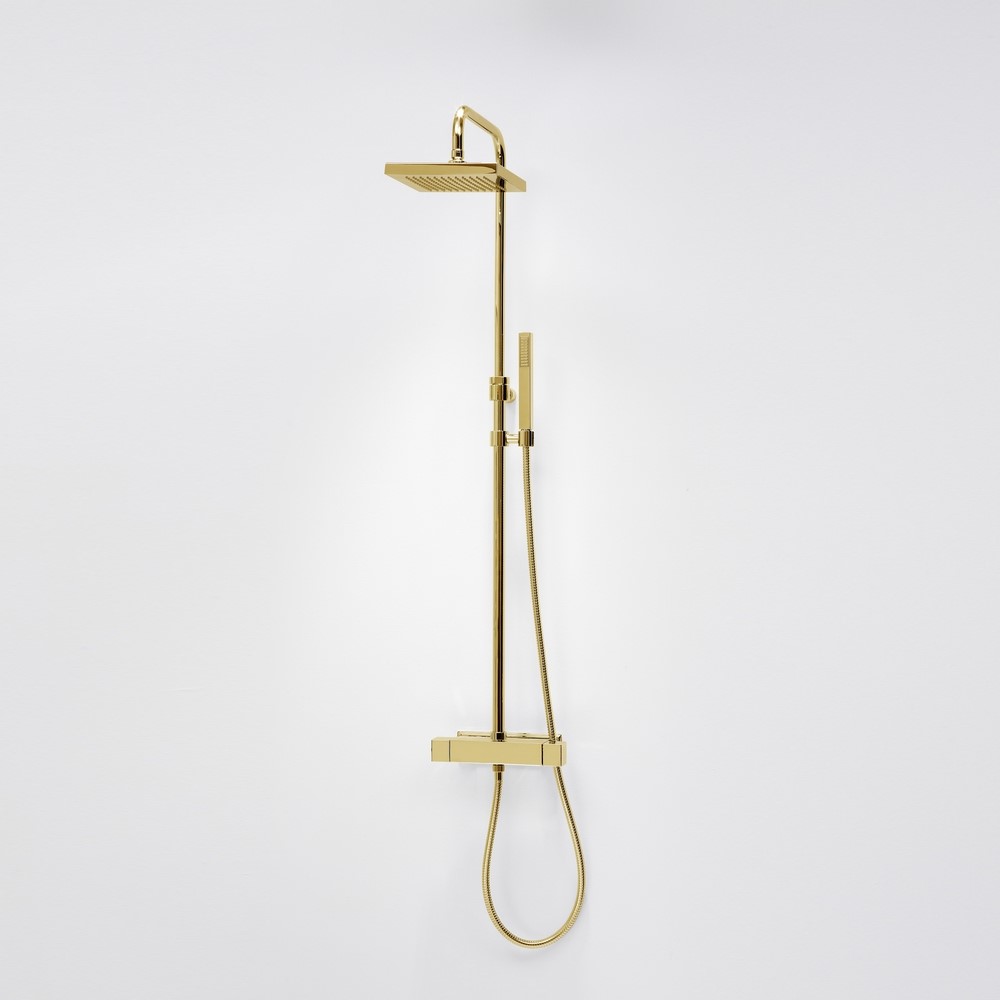 Takduschset Kvadrat 220 160 cc från Duschbyggarna är ett stilrent takduschset med eleganta, räta former. Takduschsetet är stiligt och modernt och blir snabbt ett smycke i ditt badrum. Detta set levereras med Stonemix termostatblandare (160 cc), en fyrkantig takdusch och en elegant handdusch.