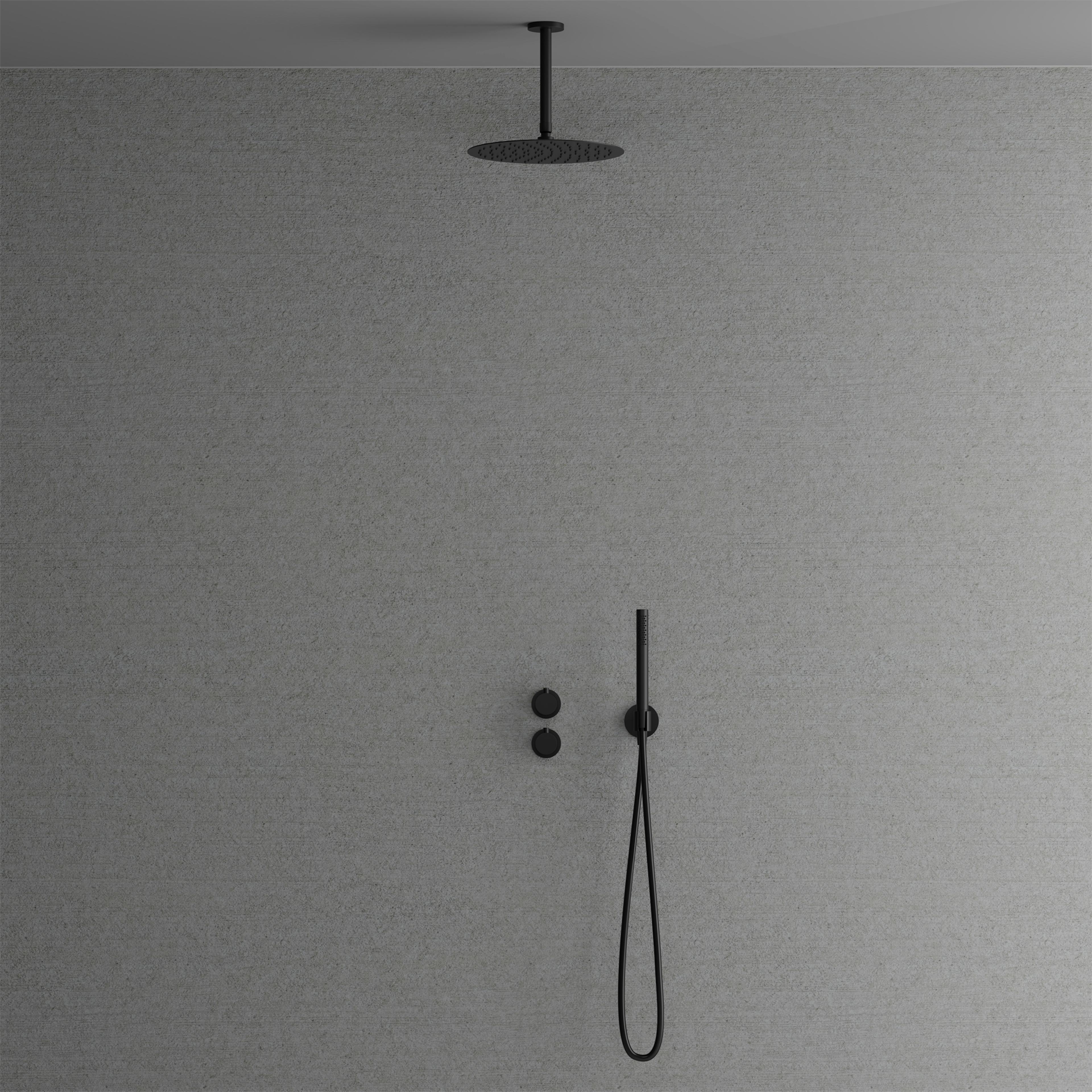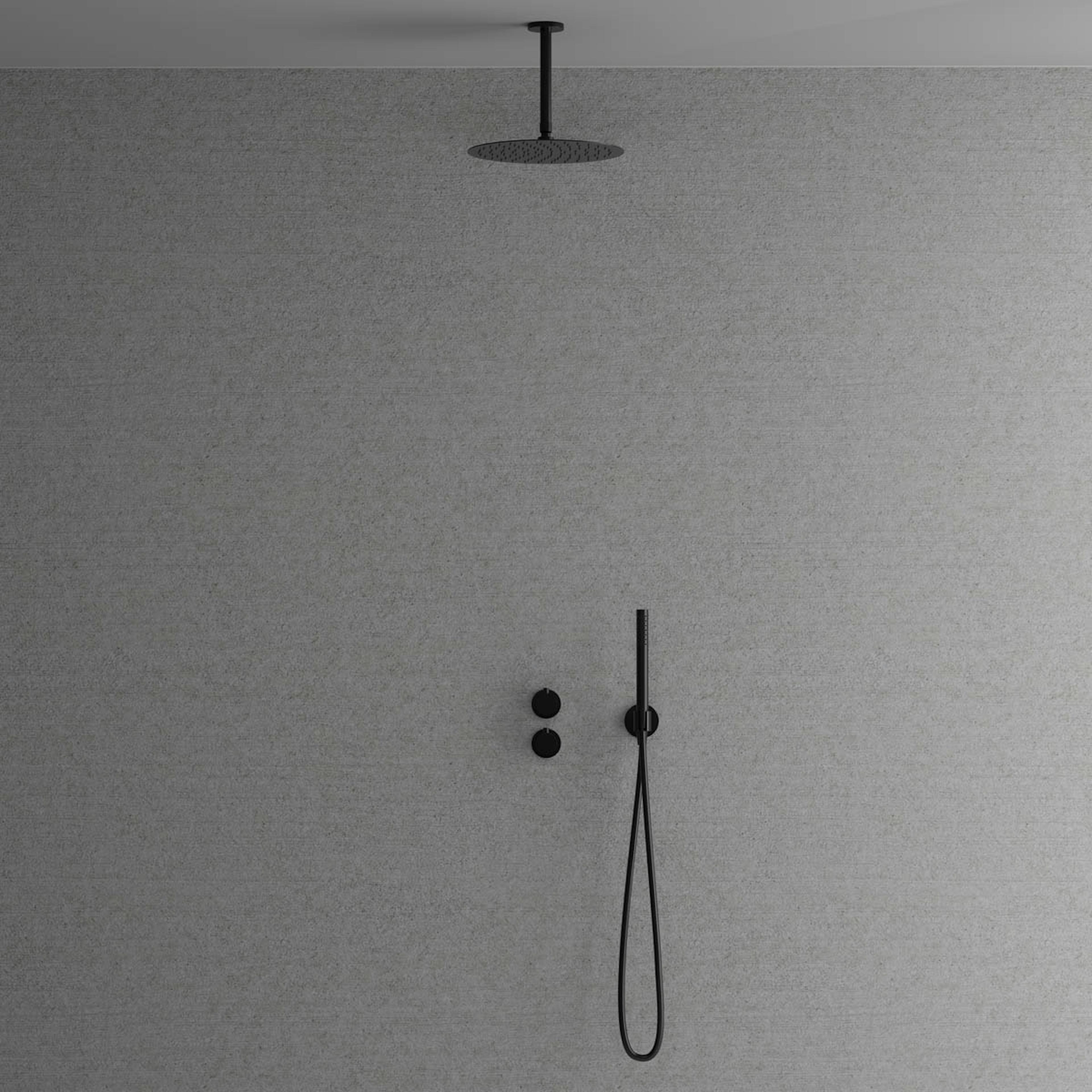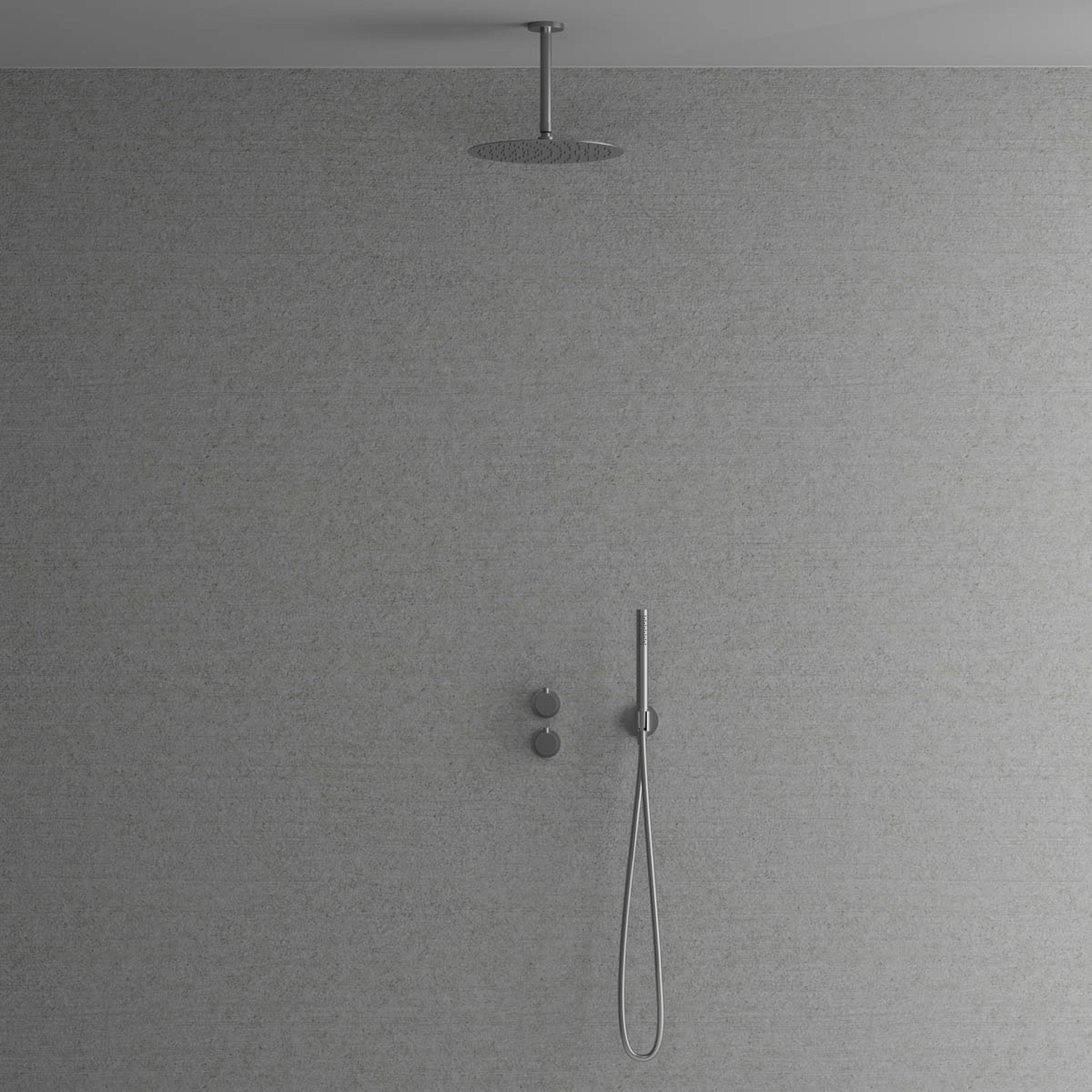 Takduschset Scandtap Steel Harmonized 2Z är en termostatblandare för inbyggnad med eleganta slimmade detaljer.