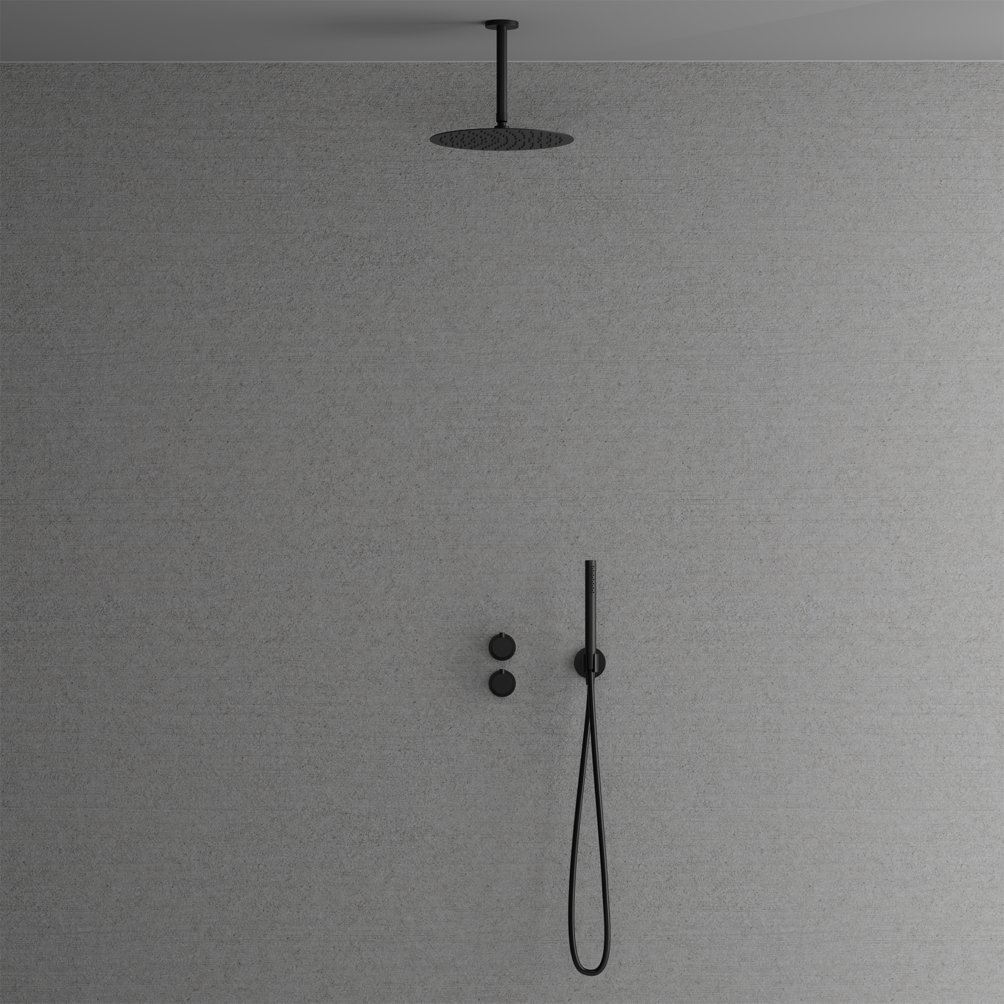 Takduschset Scandtap Steel Harmonized 2Z är en termostatblandare för inbyggnad med eleganta slimmade detaljer.