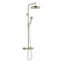 Takduschpaket med tryckbalanserad termostat och omkastare i vred. Duschröret ovanför väggfästet går att kapa efter önskad duschhöjd. 160cc. Kombineras med blandarfäste.
