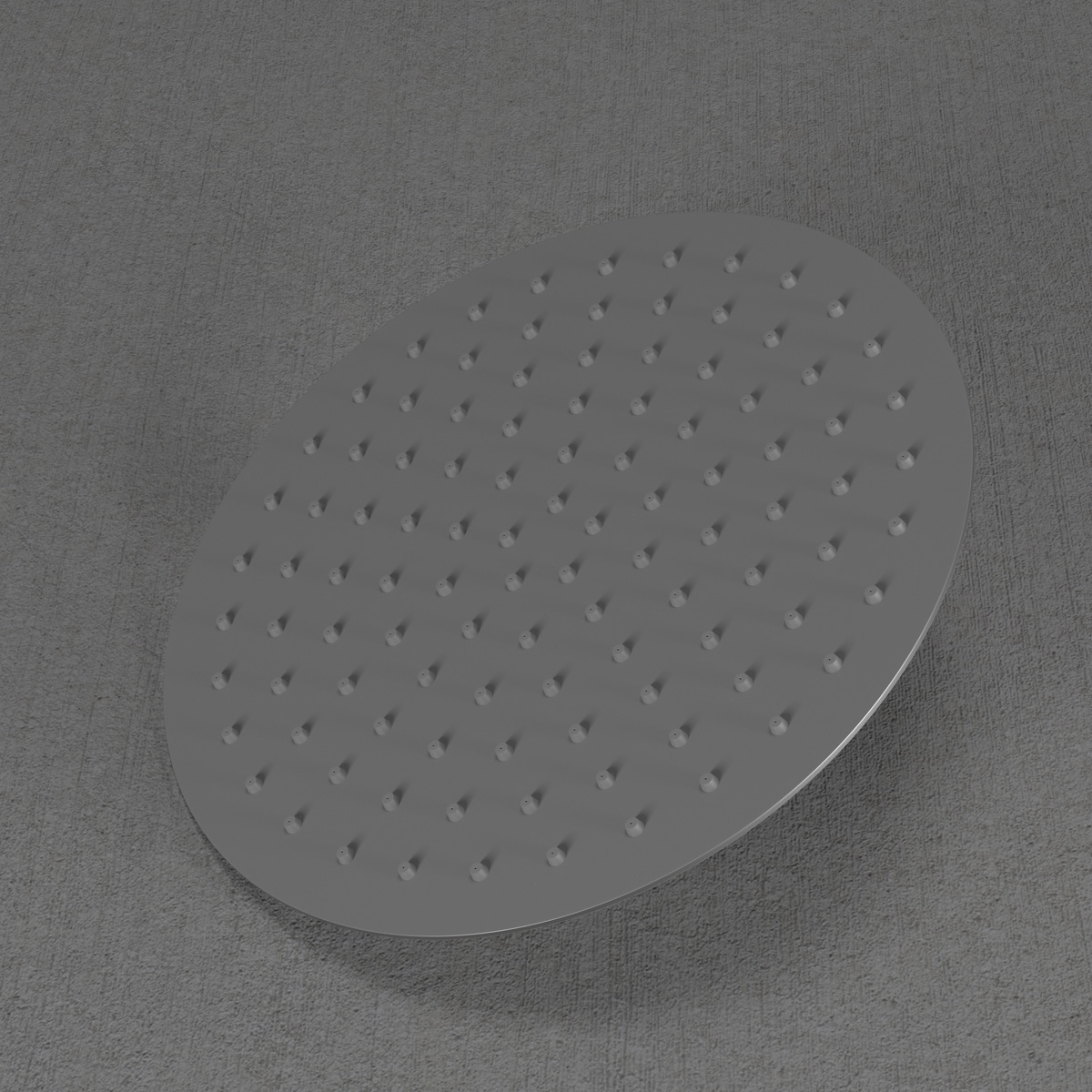 Rund och vinklingsbar taksil i rostfritt stål som avger rikligt med mjuka och omslutande vattenstrålar för optimal komfort.