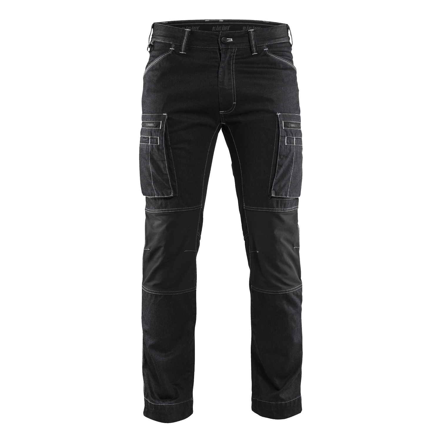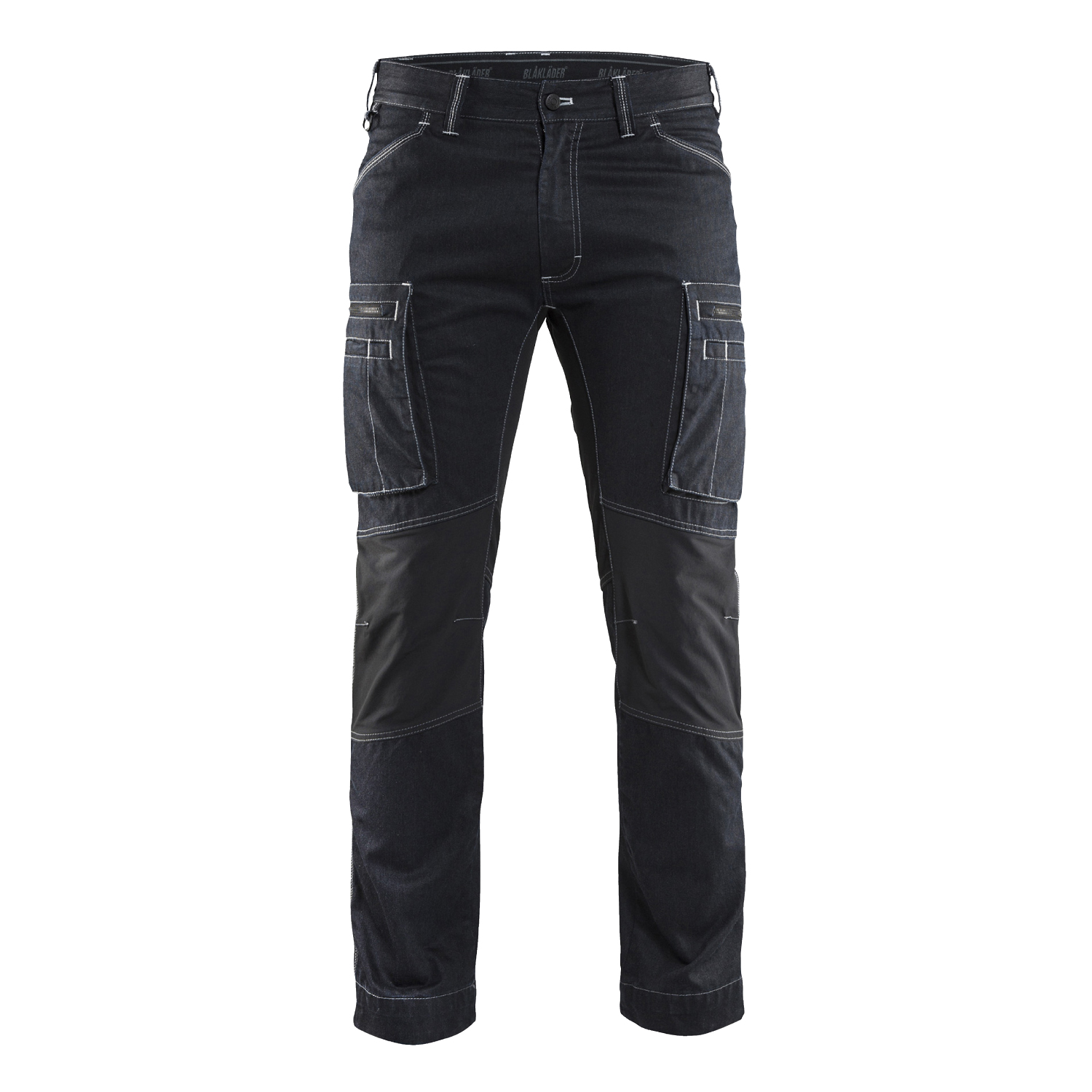 Servicebyxa från Blåkläder som har stretchpanel i gren, på knä och stuss. Materialet är CORDURA® Denim, vilket är fyra gånger starkare än vanlig Denim och gör byxorna ytterst slitstarka. Gylf med plastblixtlås och D-ring i linningen. Förlängningsmöjlighet i nederkant.