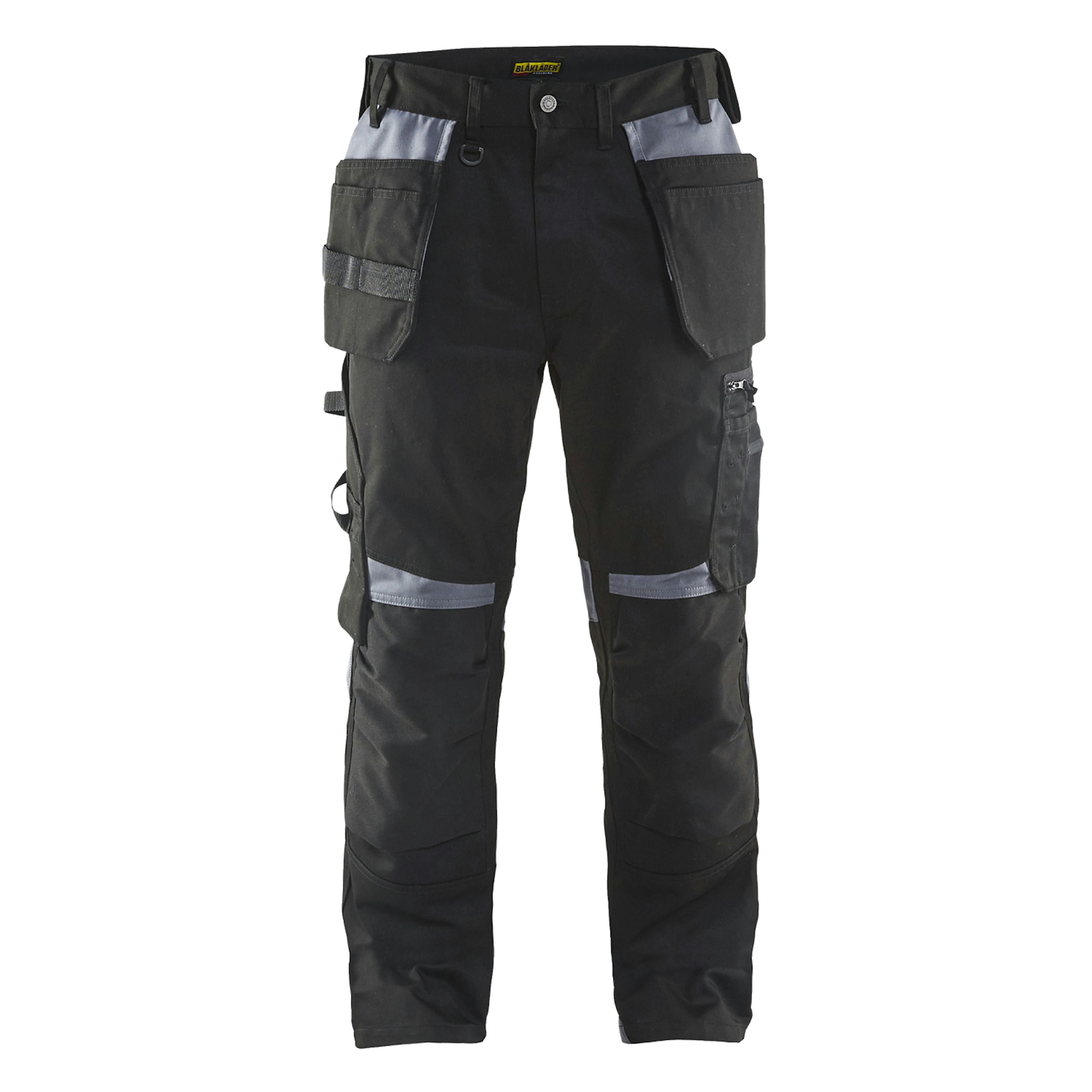 Hantverksbyxa från Blåkläder som är funktionell och bekväm. Byzan har förböjda ben som ger bra passform, spickfickor och lättåtkomliga fickor såsom telefonficka i stretchmaterial som passar de flesta mobiler. Knäskyddsficka i stretch CORDURA® för maximal passform och slitstyrka. Två bakfickor med bälg och hälla för hammarhållare samt förstärkt tumstocksficka, pennficka och knivhållare.