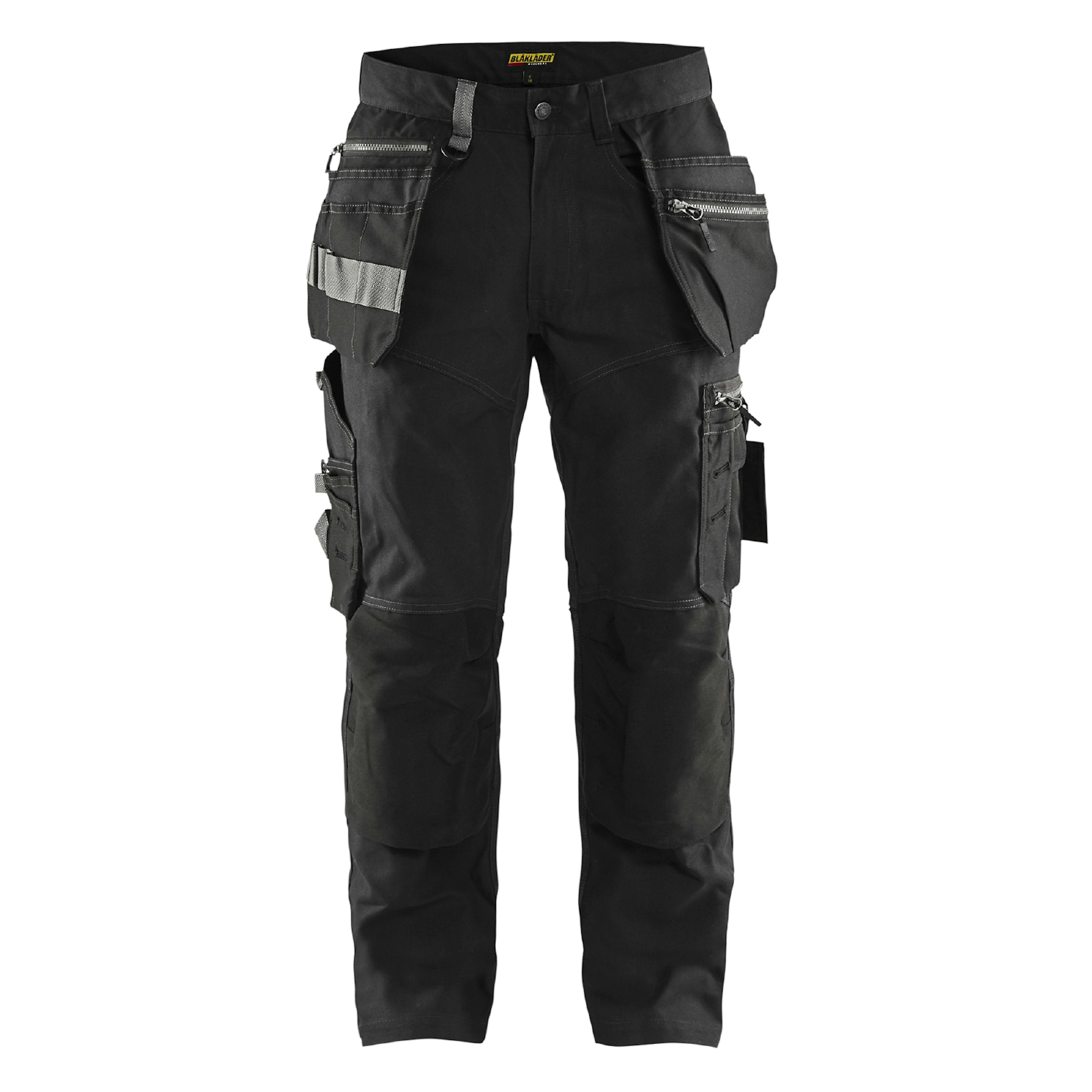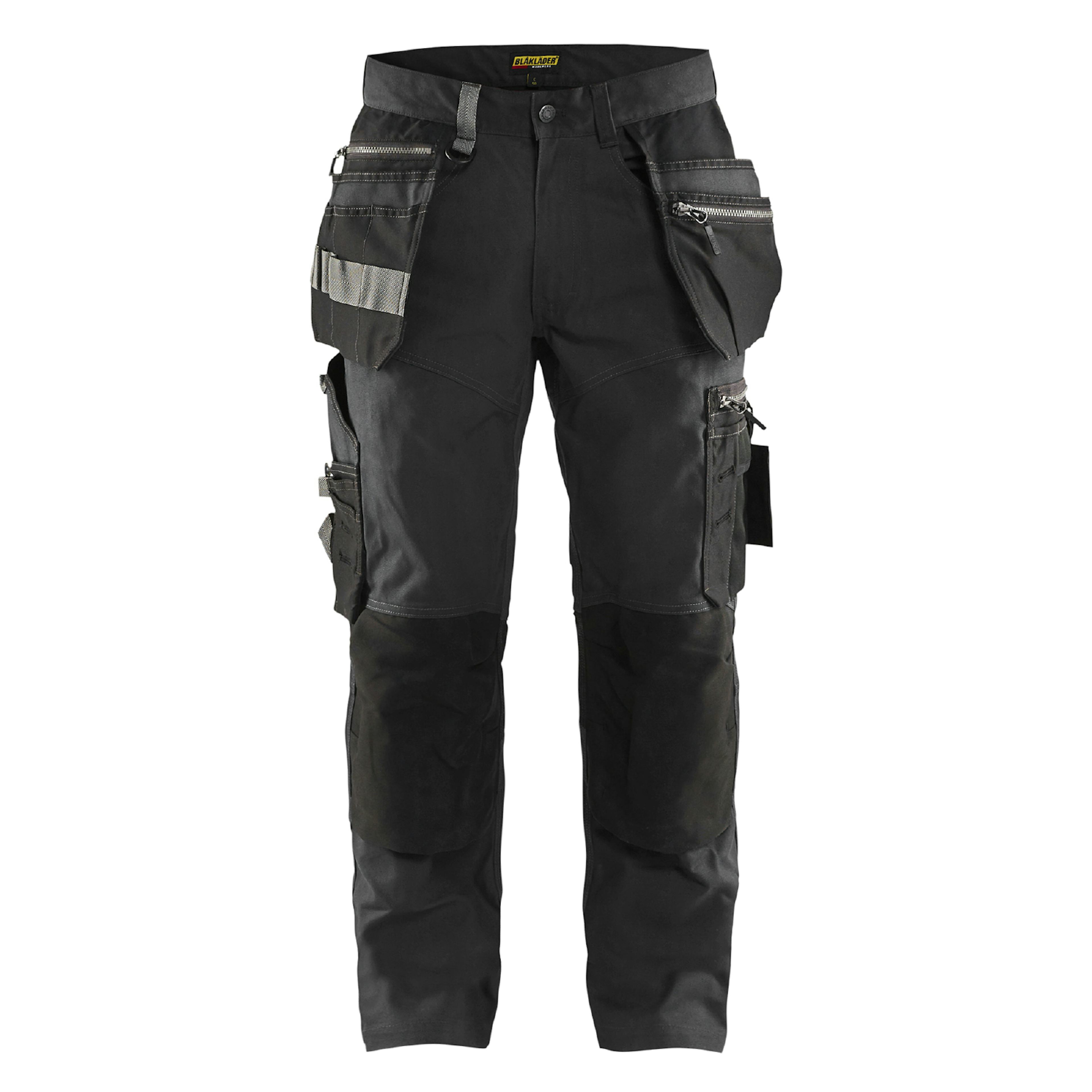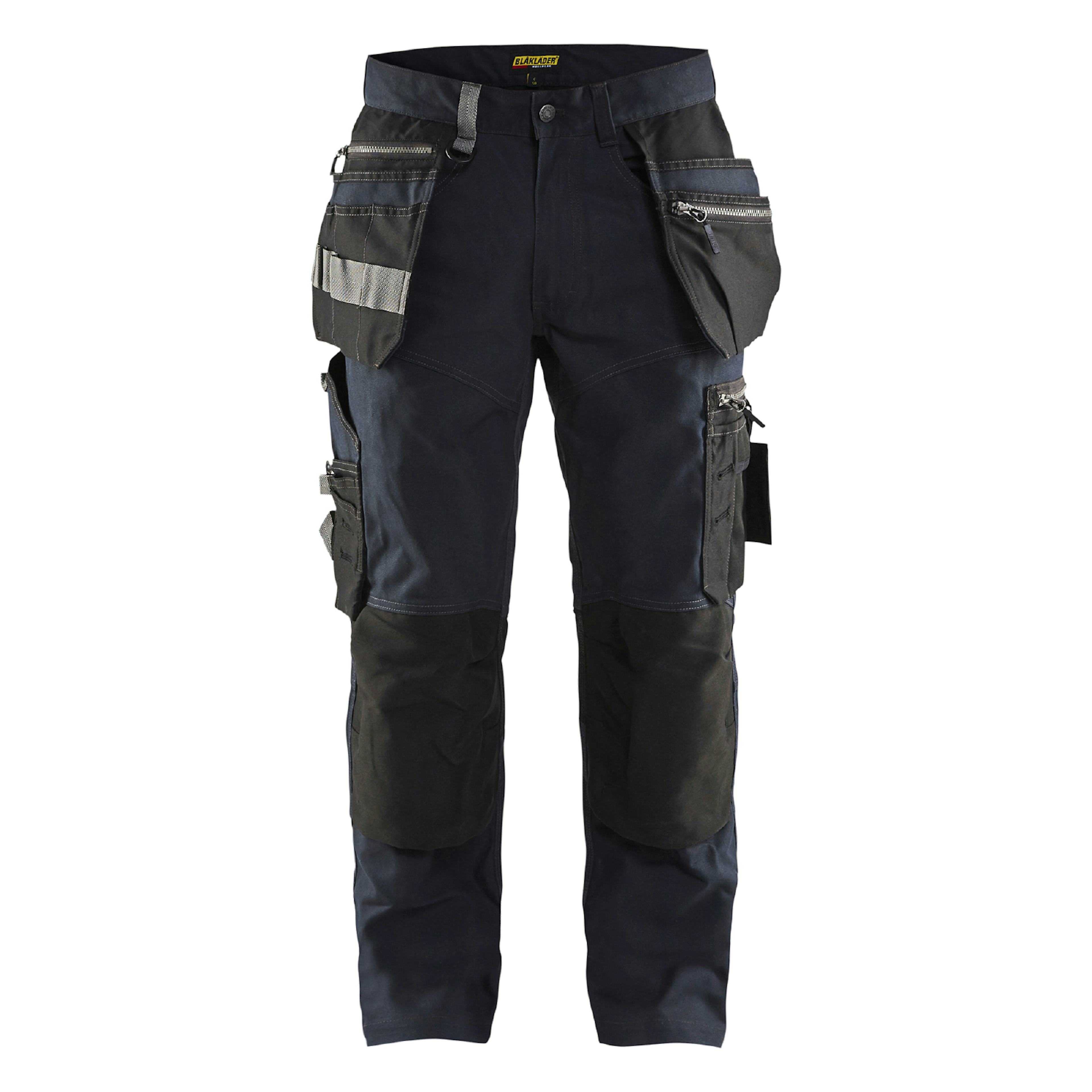 Hantverksbyxa från Blåkläder med krav på slitstyrka, komfort och praktiska detaljer. Detta är en byxa med smalare passform och material i canvas-tyg som är kraftigt men ändå lätt och luftigt.Stretchpaneler i ok och ficköppning med förstärkta knäfickor i CORDURA®-stretch gör byxan smidig och perfekt anpassad för rörliga arbetsuppgifter. Försedd med ett flertal smarta och funktionella detaljer, som extra fickor med dragkedja för säker förvaring, lättåtkomlig telefonficka i stretchmaterial som passar de flesta mobiler och svarta diskreta reflexdetaljer på vaden.