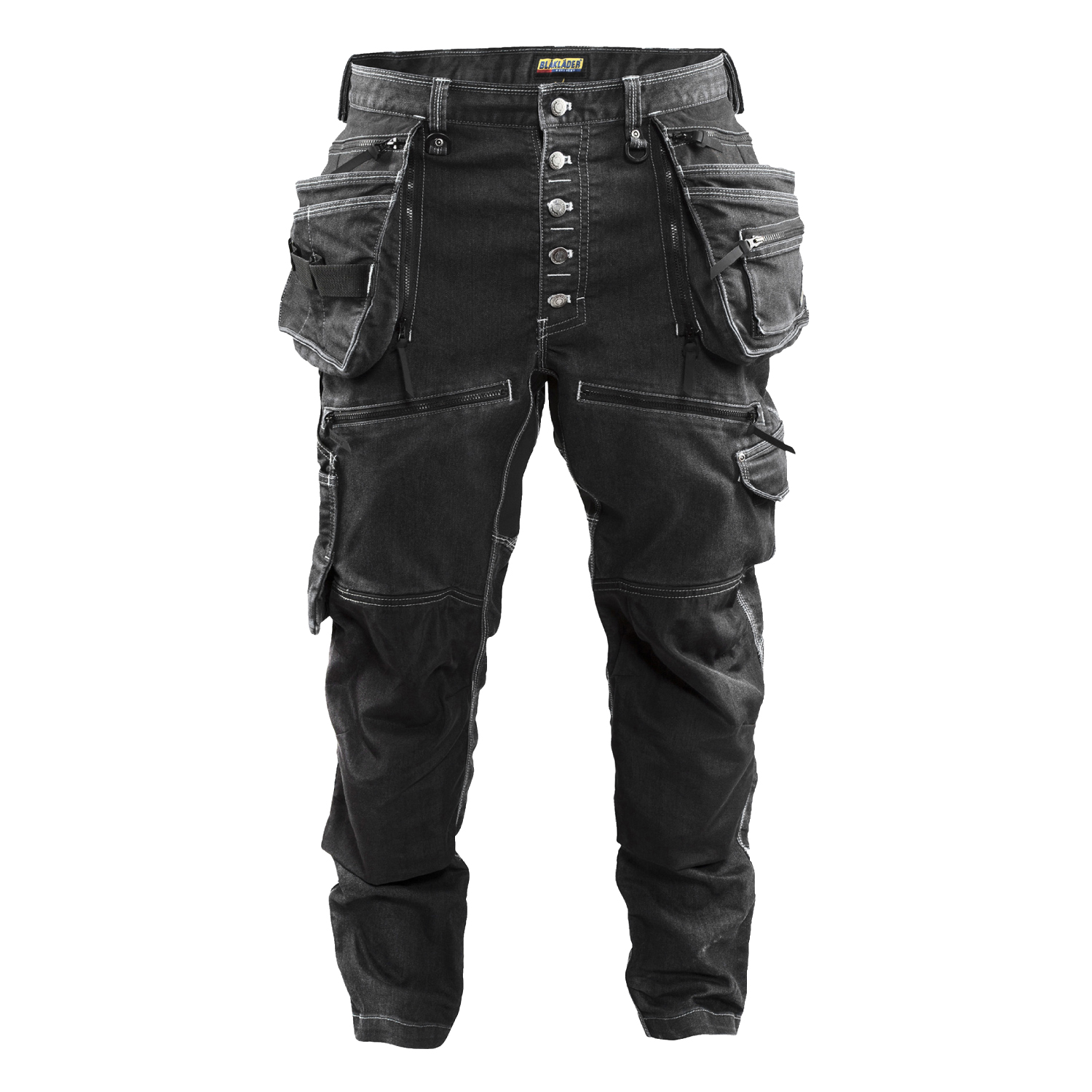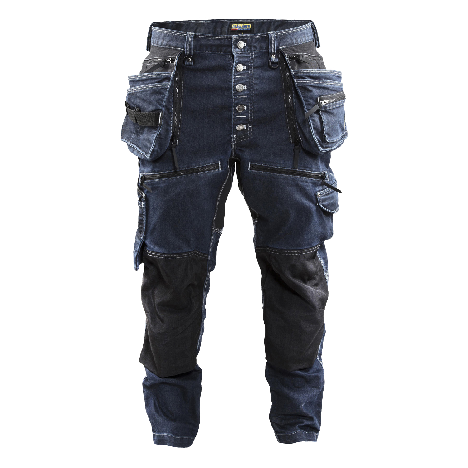Hantverksbyxa från Blåkläder i regular fit som är slitstark, har låg gren och avsmalnande ben. Tillverkad i Cordura®Denim med stretchfunktion och designad för att hänga bekvämt på höften. För optimal rörelseförmåga och komfort har byxan stretchpaneler i grenen och på vaderna. Knäna samt de funktionella fickorna är Cordura 1000-förstärkta och spikfickorna är försedda med dragkedja, vilket ger möjlighet till lösa eller fasta spikfickor.