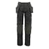 Slitstarka trenålssömmar på ben och i skrev förlänger produktens livslängd. Ergonomiskt formade byxben är tillverkade efter kroppens naturliga rörelser. Hängfickor i polyester med förstärkningar och extra fickor. Knäfickor i polyester med öppning för knäskydd från ovansidan så att inte smuts samlas. Extra synlig för omgivningarna med hjälp av reflexeffekter. Tyget tål industritvätt. Samcertifierade för användning med MASCOT:s knäskyddstyp SHORT eller LONG, eftersom knäskyddsfickan kan höjdjusteras.