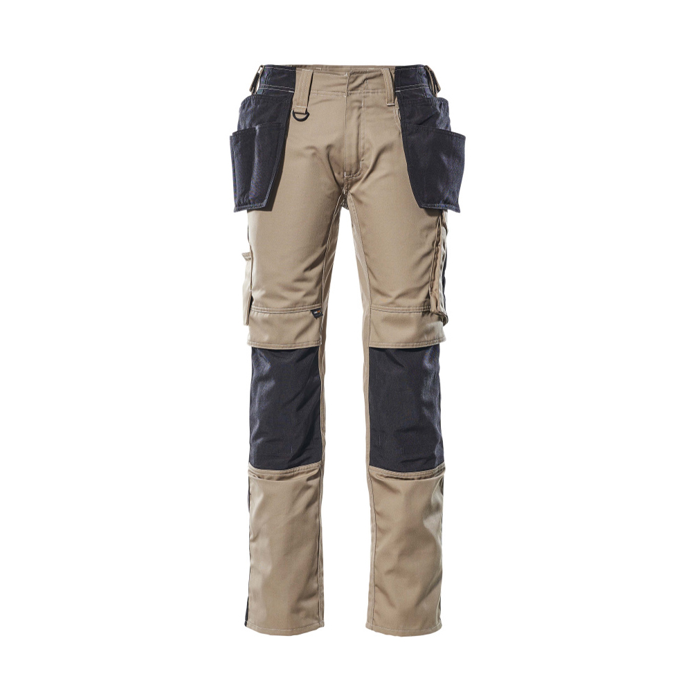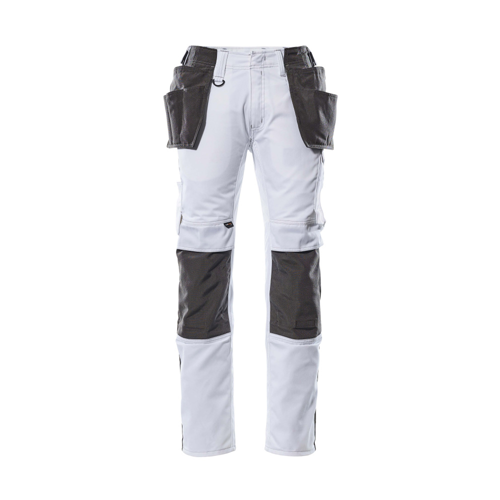 Slitstarka trenålssömmar på ben och i skrev förlänger produktens livslängd. Den låga skärningen med formskuren linning ser till att byxorna följer och stöder alla kroppens rörelser. Hängfickor i CORDURA® som är justerbara och har extra fickor till verktyg. Telefonficka integrerad i höger framficka. Av slitstark CORDURA® – med öppning för knäskydd från ovansidan och med lucka så att inte smuts samlas. Samcertifierade för användning med MASCOT:s knäskyddstyp SHORT eller LONG, eftersom knäskyddsfickan kan höjdjusteras.