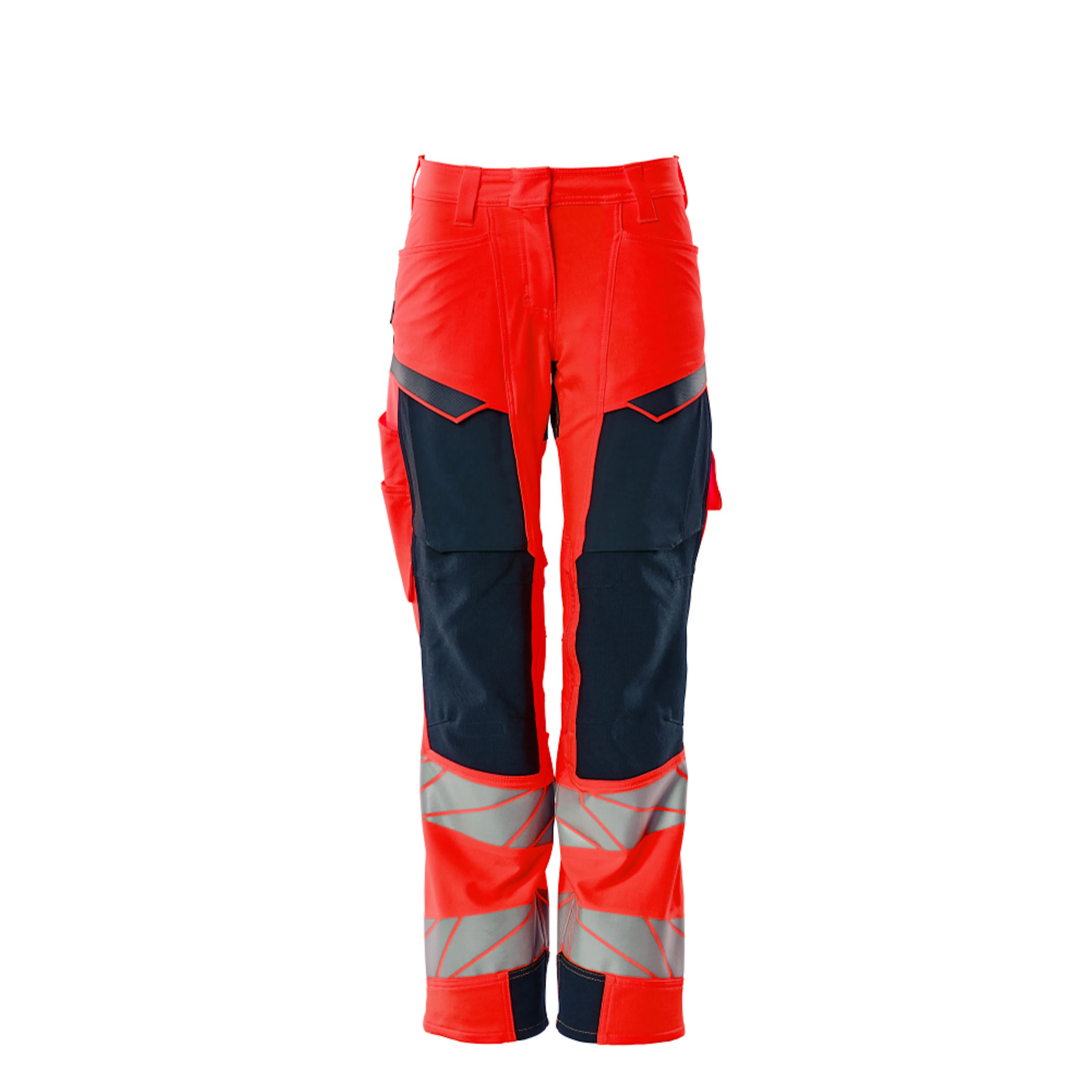 Lady passform DIAMOND. Fluorescerande och med reflexer. Har en vattenavvisande yta. Tvåfärgat. Ultimate stretchtyg med låg vikt och bra slitstyrka. Tvånålsstickningar på benen och i grenen. Låg midja. Knäppningen är dold. Byxbenen är ergonomiskt formade. Bältesstroppar. Stängning med blixtlås. Fickor på framstycket. Bakfickor med förstärkningar. Dold hammarögla i höger sida. Förberedd för hängfickor 19450-126 som sätts fast med knappar. Tumstocksfickor med Kevlar®-förstärkningar. Fickor med lock på framsidan av låret. Justerbara knäfickor i mycket slitstark CORDURA® (1000 D). Enkel individuell justering av knäficka höjd. Benficka med fodrad telefonficka, dold stängning med tryckknapp och inbyggd ID-kortshållare. ID-kortshållaren är avtagbar. Lodrätt blixtlås med möjlighet för ventilation på baksidan av låret. Med tryckeffekter. Innerbenslängden kan ökas med 3 cm genom att ta bort den invändiga röda sömmen vid foten. Vi rekommenderar 00718-100, 00418-100, 50454-916 & 20118-915 knäskydd till den här modellen. Samcertifierade med knäskyddstyp SHORT eller LONG enligt EN 14404.
