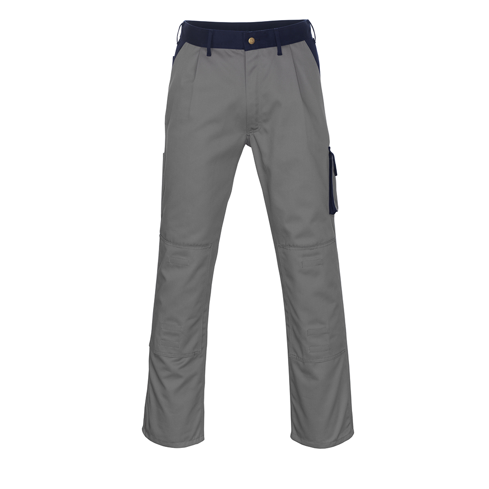 Tvåfärgat. Trenålsstickningar på benen och i grenen. Bältesstroppar. Gylf med blixtlås. Fickor på framstycket. Biljettficka. Bakfickor med förstärkningar och lock med kardborreband. Hammarstroppen är justerbar. Benficka med lock och kardborreband. Tumstocksfickan är förstärkt och har en liten ficka utanpå. Knäfickorna är justerbara.