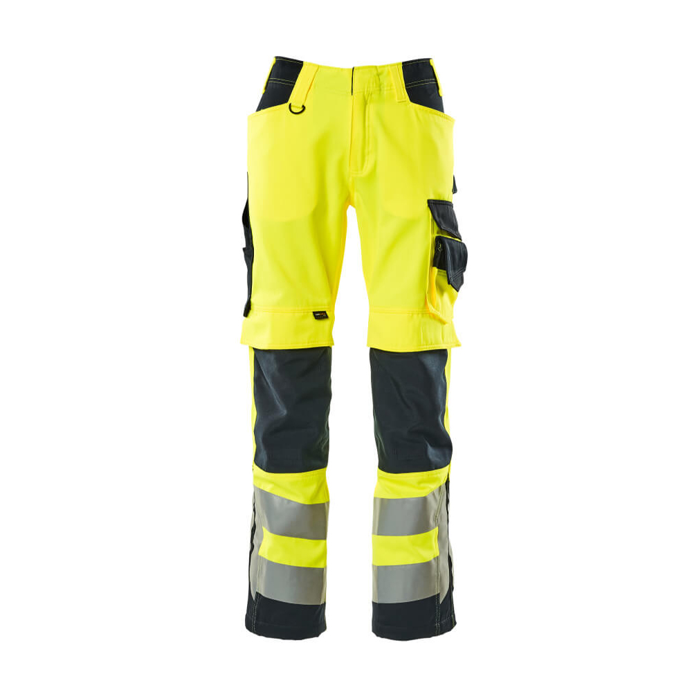 Fluorescerande och med reflexer. Tvåfärgat. Teflon® gör produkten smutsavvisande. Trenålsstickningar på benen och i grenen. Låg midja och formskuren linning. Byxbenen är ergonomiskt formade. Bältesstroppar. Gylf med blixtlås. D-ring. Fickor på framstycket. Bakfickor med förstärkningar, lock och dolda tryckknappar. Hammarstroppen är justerbar. Benficka med förstärkningar och extra fickor – en invändig telefonficka samt en utvändig telefonficka med lock och magnetknäppning. Tumstocksficka med CORDURA®-förstärkt öppning. Justerbara knäfickor i slitstark CORDURA® (500 D) med ficklock och öppning ovanifrån. Lodräta reflexremsor på yttersidan av benen för extra synlighet. Innerbenslängden kan ökas med 3 cm genom att ta bort den invändiga röda sömmen vid foten. Vi rekommenderar 00718-100, 00418-100, 50454-916 & 20118-915 knäskydd till den här modellen. Samcertifierade med knäskyddstyp SHORT eller LONG enligt EN 14404.