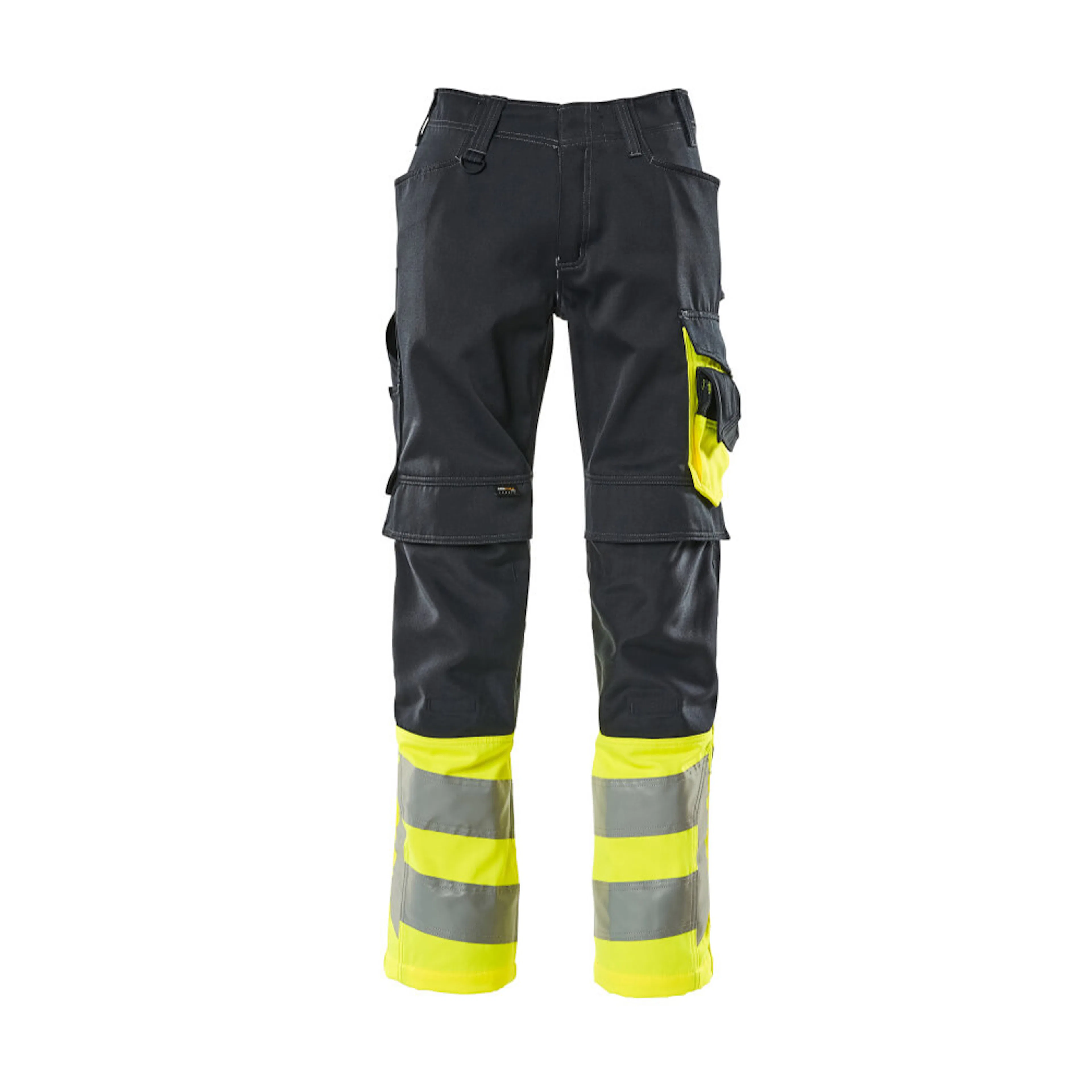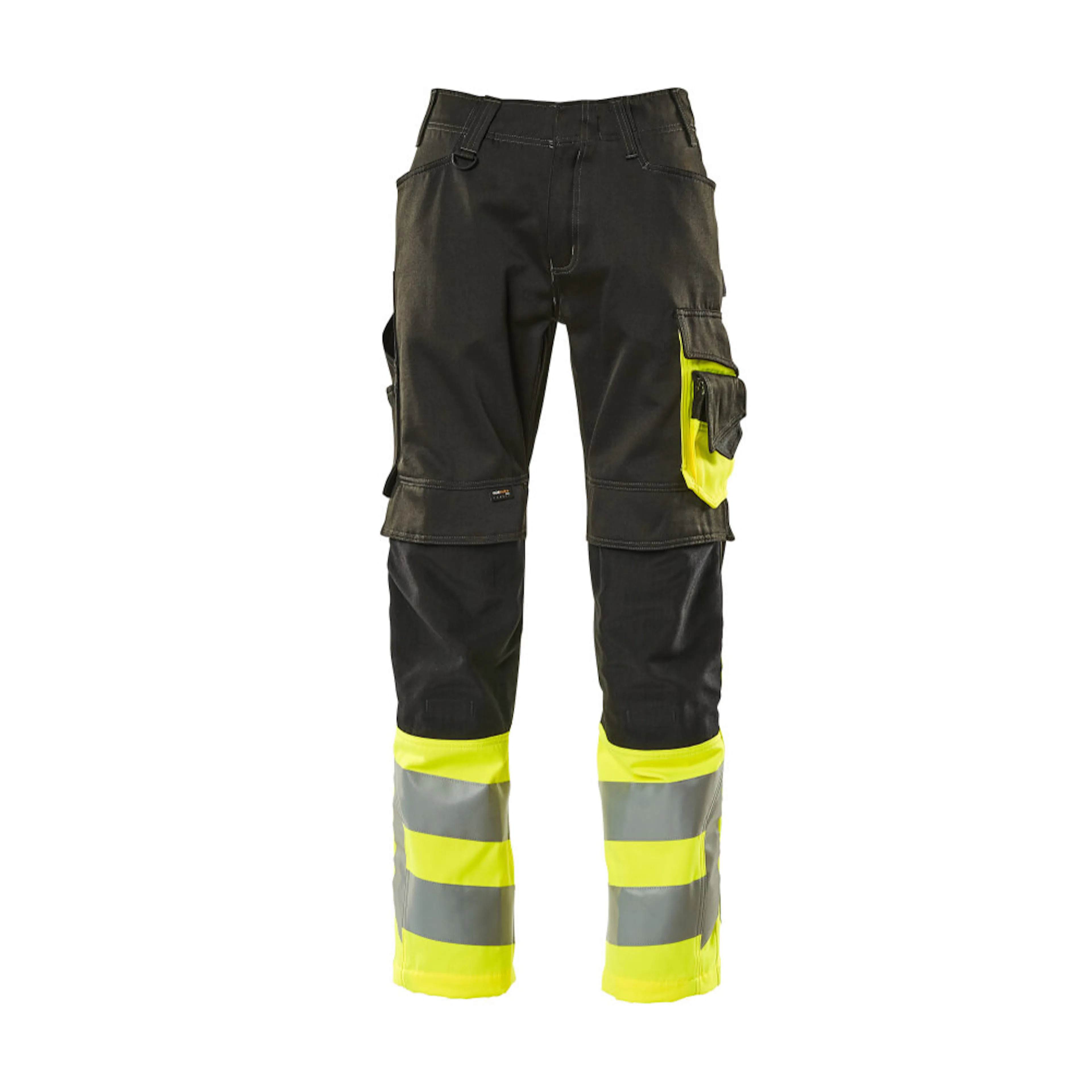 Fluorescerande kontrastfärg och med reflexer. Teflon® gör produkten smutsavvisande. Tvåfärgat. Trenålsstickningar på benen och i grenen. Låg midja och formskuren linning. Byxbenen är ergonomiskt formade. Bältesstroppar. Gylf med blixtlås. D-ring. Fickor på framstycket. Bakfickor med förstärkningar, lock och dolda tryckknappar. Hammarstroppen är justerbar. Benficka med förstärkningar och extra fickor – en invändig telefonficka samt en utvändig telefonficka med lock och magnetknäppning. Tumstocksficka med CORDURA®-förstärkt öppning. Justerbara knäfickor i slitstark CORDURA® (500 D) med ficklock och öppning ovanifrån. Lodräta reflexremsor på yttersidan av benen för extra synlighet. Innerbenslängden kan ökas med 3 cm genom att ta bort den invändiga röda sömmen vid foten. Vi rekommenderar 00718-100, 00418-100, 50454-916 & 20118-915 knäskydd till den här modellen. Samcertifierade med knäskyddstyp SHORT eller LONG enligt EN 14404.