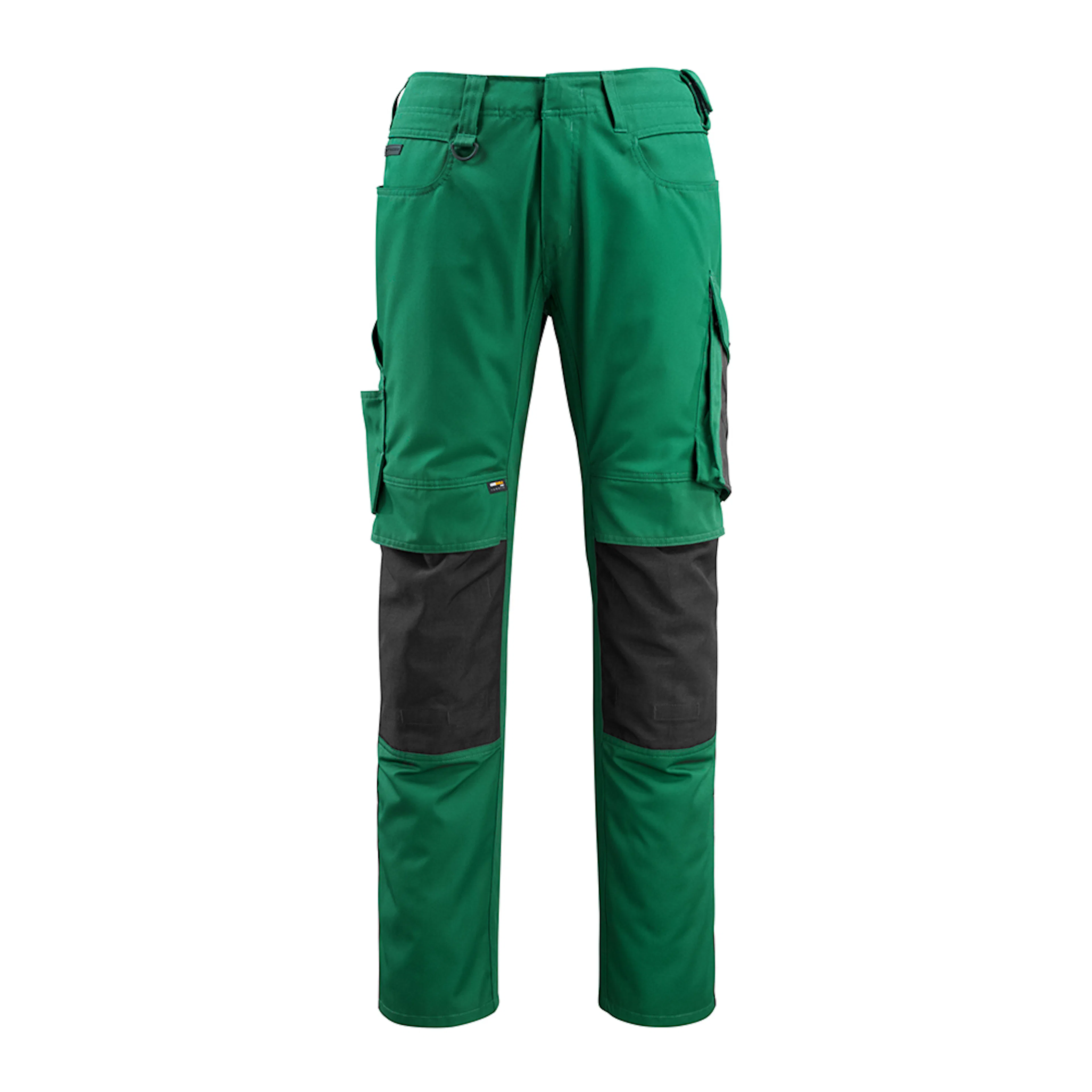 Utmärkt passform med formskurna ben och kilar på insidan av ben och skrev (med extra förstärkning). Slitstarka trenålssömmar på ben och i skrev förlänger produktens livslängd. Telefonficka integrerad i höger framficka. Av slitstark CORDURA® – med öppning för knäskydd från ovansidan och med lucka så att inte smuts samlas. Extra synlig för omgivningarna med hjälp av reflexeffekter. Samcertifierade för användning med MASCOT:s knäskyddstyp SHORT eller LONG, eftersom knäskyddsfickan kan höjdjusteras.