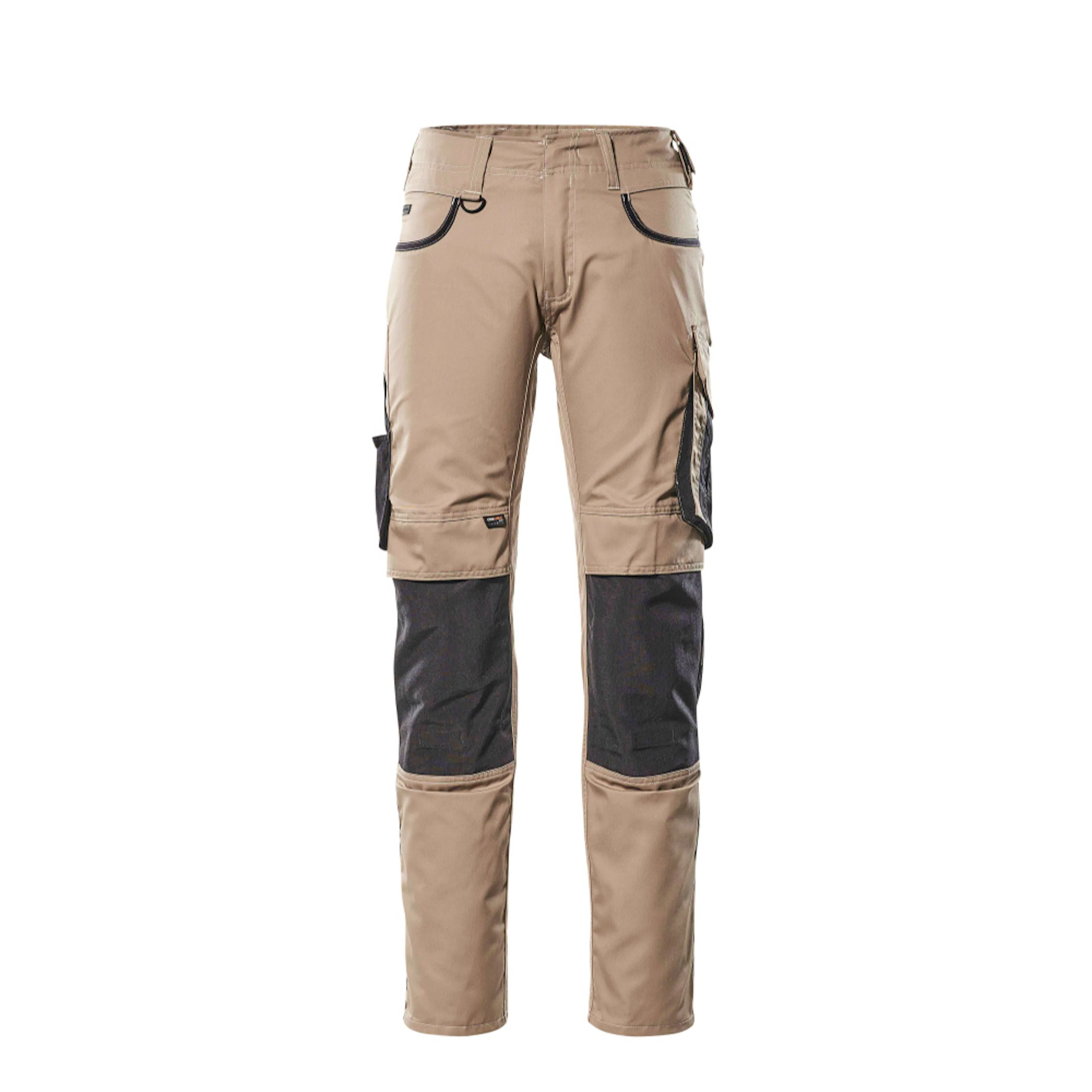 Slitstarka trenålssömmar på ben och i skrev förlänger produktens livslängd. Den låga skärningen med formskuren linning ser till att byxorna följer och stöder alla kroppens rörelser. Utmärkt passform med formskurna ben och kilar på insidan av ben och skrev (med extra förstärkning). Av slitstark CORDURA® – med öppning för knäskydd från ovansidan och med lucka så att inte smuts samlas. Extra synlig för omgivningarna med hjälp av reflexeffekter. Samcertifierade för användning med MASCOT:s knäskyddstyp SHORT eller LONG, eftersom knäskyddsfickan kan höjdjusteras.