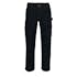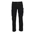 Tvånålsstickningar och trenålsstickningar på benen och i grenen. Låg midja och formskuren linning. Byxbenen är ergonomiskt formade. Bältesstroppar. Gylf med blixtlås. Fickor på framstycket. Bakfickor med förstärkningar och lock med kardborreband. Hammarstroppen är justerbar. Benficka med förstärkningar, telefonficka och lock med kardborreband. Tumstocksfickan är förstärkt och har en liten ficka utanpå. Pennficka. Kontrastsömmarna är orange. Reflexeffekter.