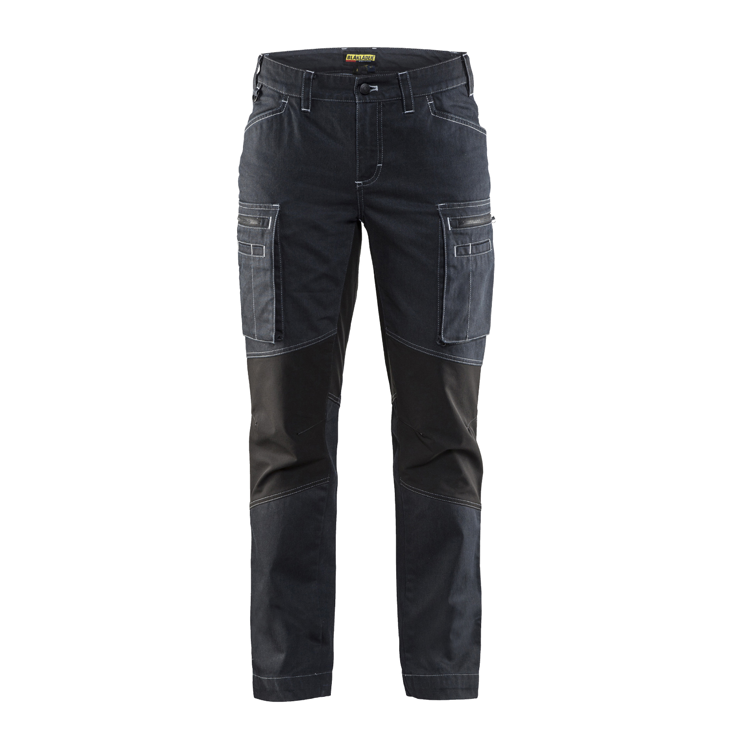 Servicebyxa från Blåkläder i dammodell med förböjda ben och stretchpanel i gren, på knä och stuss. Byxan har gylf med plastblixtlås och resår i midjan för extra komfort.