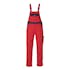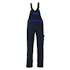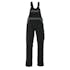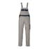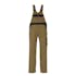 Tvåfärgat. Trenålsstickningar på benen och i grenen. Hängslen, justerbara och med kort, kraftig resår och spännen av plast. Bröstficka med lock och pennfickor. Innerficka med kardborreband. Linningen är justerbar. Fickor på framstycket. Gylf med blixtlås. Bakfickor med förstärkningar, lock och kardborreband. Hammarstroppen är justerbar. Benficka med lock och kardborreband. Tumstocksficka. Knäfickorna är justerbara.
