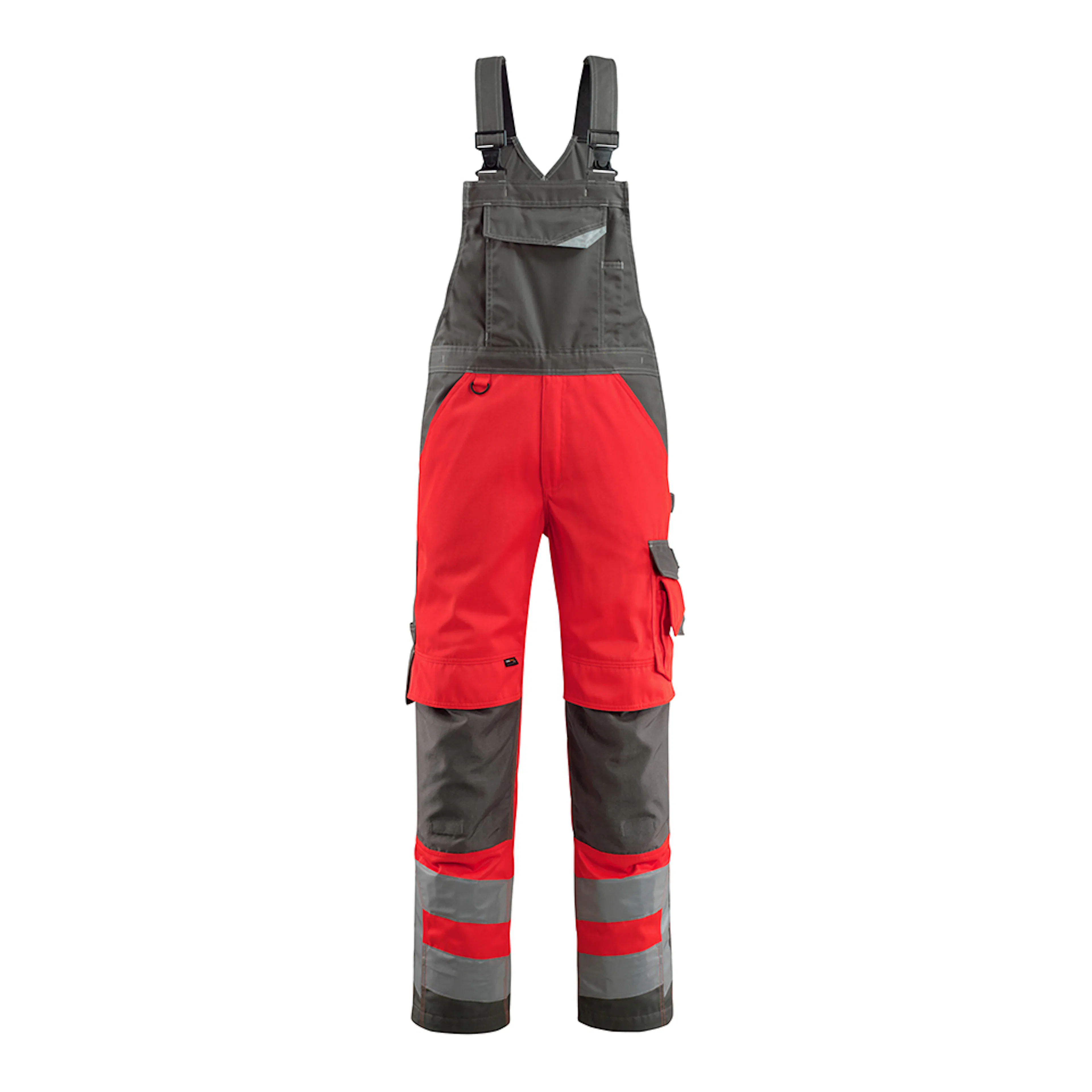 Fluorescerande och med reflexer. Tvåfärgat. Teflon® gör produkten smutsavvisande. Trenålsstickningar på benen och i grenen. Byxbenen är ergonomiskt formade. Hängslen, justerbara och med kort, kraftig resår och spännen av plast. Ändarna på hängslena kan stoppas undan bakom bröstfickan med hjälp av små stroppar. Bröstficka med fack för penna, telefonficka med blixtlås och lock med dolda tryckknappar. Linningen är justerbar. Bältesstroppar. Gylf med blixtlås. D-ring. Fickor på framstycket. Bakfickor med förstärkningar, lock och dolda tryckknappar. Hammarstroppen är justerbar. Benficka med förstärkningar och extra fickor – en invändig telefonficka samt en utvändig telefonficka med lock och magnetknäppning. Tumstocksficka med CORDURA®-förstärkt öppning. Justerbara knäfickor i slitstark CORDURA® (500 D) med ficklock och öppning ovanifrån. Lodräta reflexremsor på yttersidan av benen för extra synlighet. Innerbenslängden kan ökas med 3 cm genom att ta bort den invändiga röda sömmen vid foten. Vi rekommenderar 00718-100, 00418-100, 50454-916 & 20118-915 knäskydd till den här modellen. Samcertifierade med knäskyddstyp SHORT eller LONG enligt EN 14404.