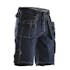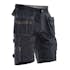 Rymliga hölsterfickor som kan stoppas ned i framfickorna. Rymliga framfickor. Bakfickor med förstärkt insida. Hammarhank. Extra hällor för bältet på de största storlekarna. Tumstocksficka med knivhållare. Benficka med blixtlås, telefonfack, ID-kortsfack och extrafack.
