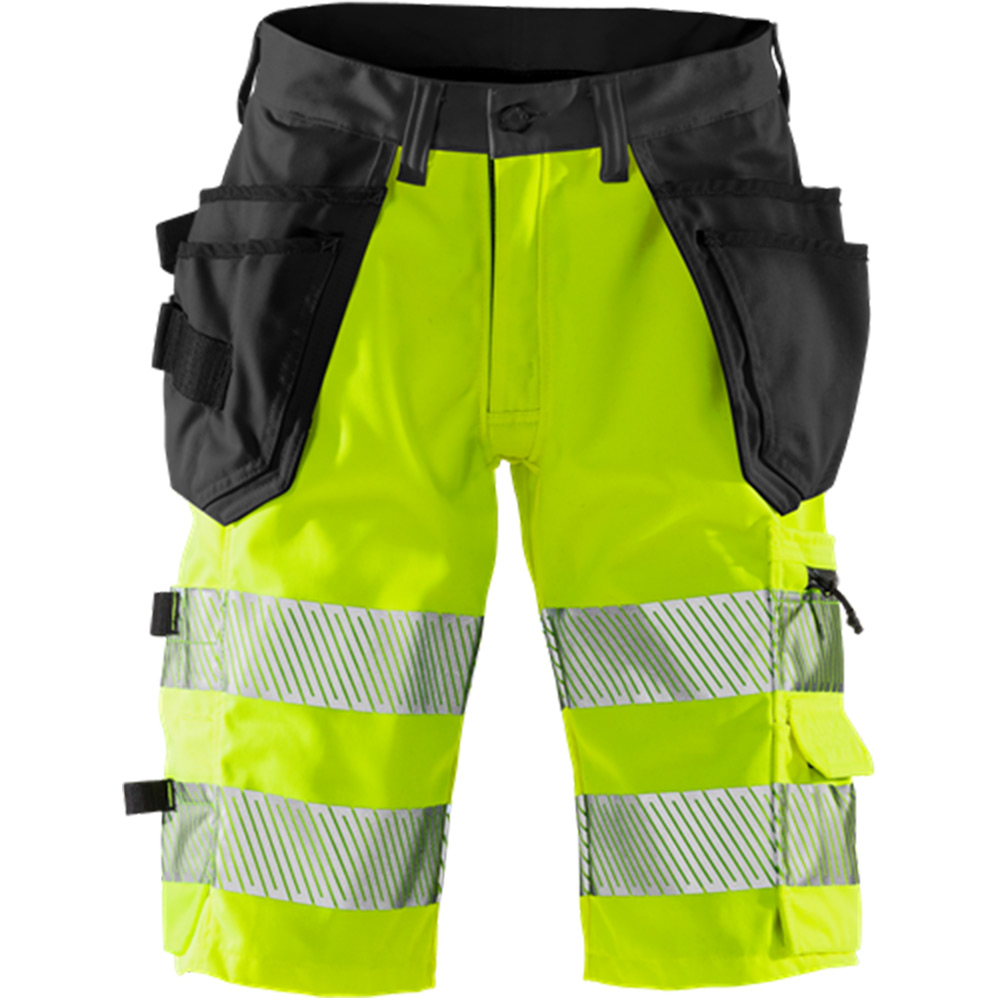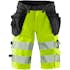 Varsel hantverkarshorts stretch 2509 PLU, klass 1. Partier med 4-vägs stretch i midja, sidor, ok bak och gren / 2 CORDURA®-förstärkta löst hängande spikfickor, den ena med 3 mindre fickor och verktygshälla och den andra med en extra ficka / 2 sidfickor / D-ring / 2 bakfickor med dragkedja / Dubbel förstärkt grensöm / Hammarhank / Tumstocksficka med verktygsficka, pennficka samt knapp och hälla för kniv / Benficka med telefonficka, ID-kortsficka och ficka med dragkedja / Godkänd enligt EN ISO 20471 klass 1 / Godkänd efter 25 tvättar / Miljödeklarerad, EPD reg.nr 3884 på environdec.com / OEKO-TEX®-certifierade.