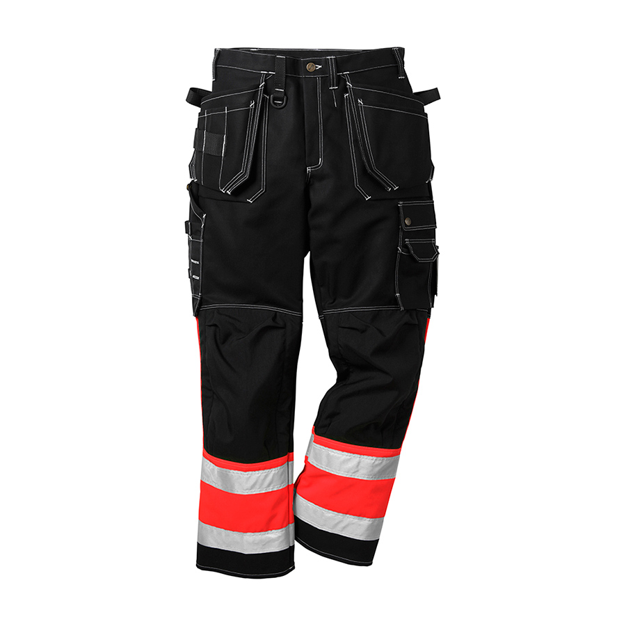 FAS® 100% bomull, Fristads bästa twill. Utsatta fickor förstärkta med 100% polyamid Cordura®. Fluorescerande material i 80% polyester, 20% bomull.