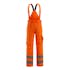 Fluorescerande med sneda tvärgående reflexer. Andas, vind- och vattentät. Sömmarna är tejpade. Quiltfoder. Bältesstroppar. D-ring. Gylf med blixtlås. Fickor på framstycket. Bakfickor med förstärkningar, lock och dolda tryckknappar. Benficka med förstärkningar och extra fickor – en invändig telefonficka samt en utvändig telefonficka med lock och magnetknäppning. Tumstocksficka. Knäfickorna är justerbara och har lock öppning upptill. Snölås invändigt i benen. Blixtlås med vindskydd på yttersidan av benen. Vi rekommenderar 00718-100, 00418-100, 50454-916 & 20118-915 knäskydd till den här modellen. Samcertifierade med knäskyddstyp SHORT eller LONG enligt EN 14404.