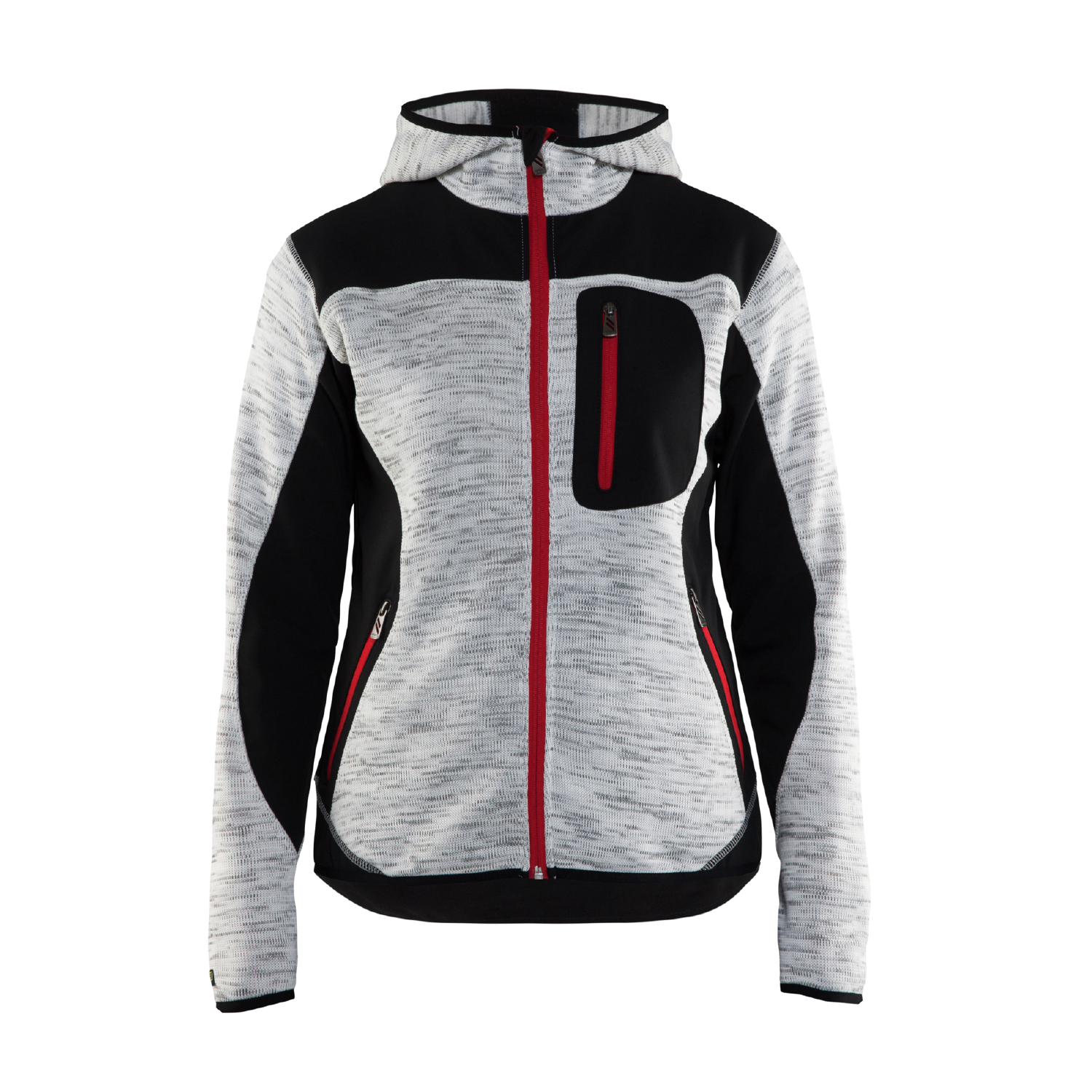 Stickad jacka i dammodell från Blåkläder i snygg design och bekväm kvalitet. Jackan är förstärkt med softshellmaterial på armbågar, axlar och ryggslut för ökad slitstyrka. Funkar lika bra i arbete som på fritiden.