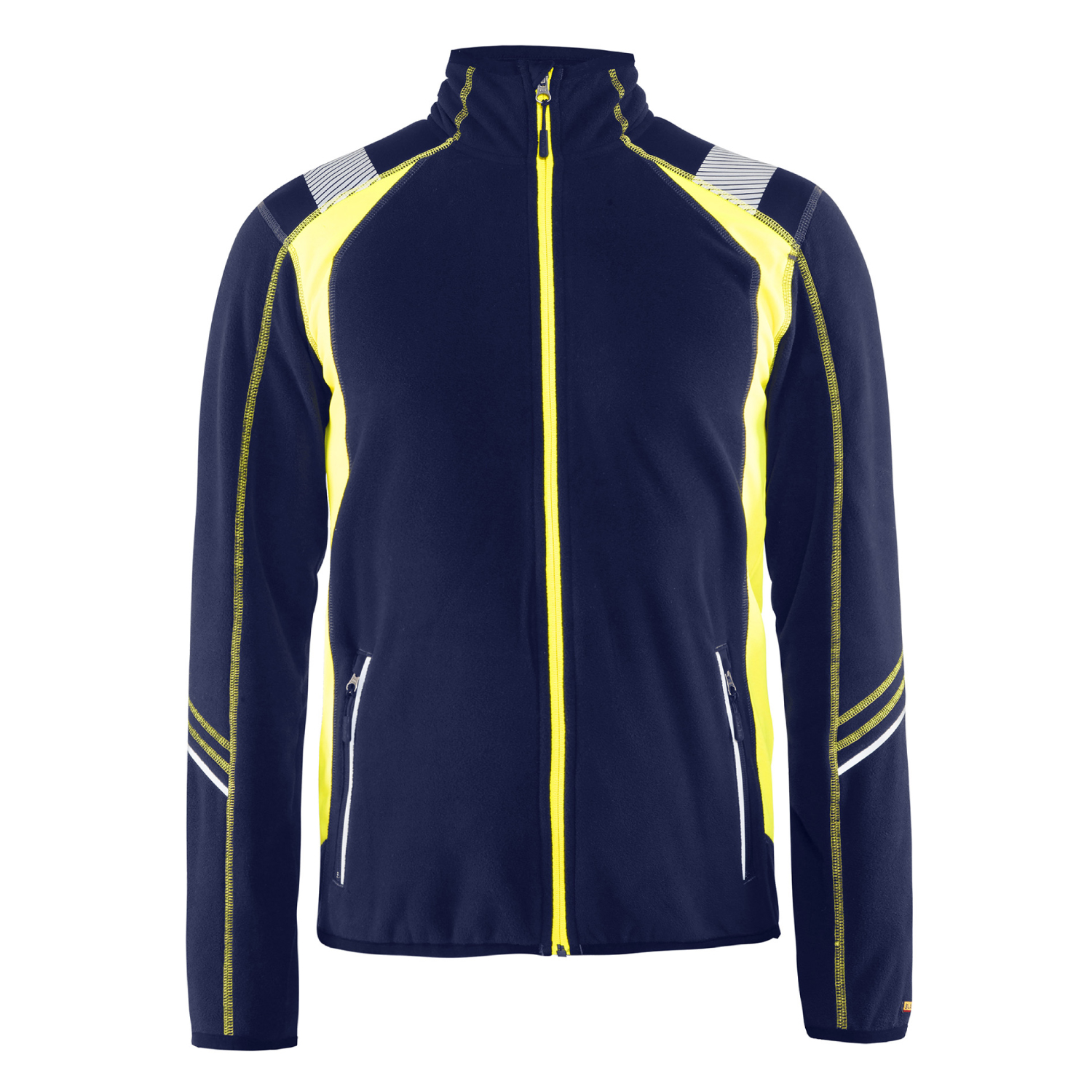 Antipillingbehandlad microfleece från Blåkläder med smarta varseldetaljer för ökad synbarhet. Jackan har reflexdetaljer på ärmar, fickor och axlar samt framfickor med blixtlås och två innerfickor. För optimal passform är ryggslutet förlängt och elastiska band finns i både ärmavslut och nederkant.